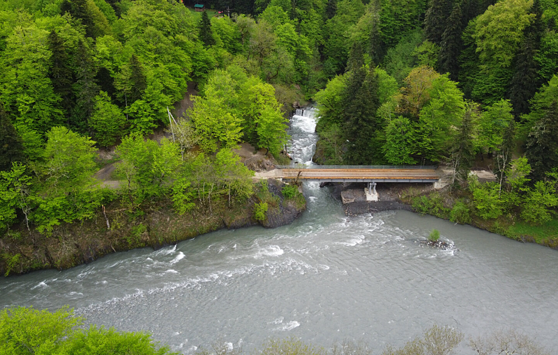 Из пос. Каменномостский до базы размещения: Проезжаете весь поселок по главной дороге, далее 7 км до единственной развилки Гузерипль / Лаго-Наки. На развилке поворачиваем направо, проезжаем мост через реку Белую и следуем вверх по дороге, ведущей к плато Лаго-Наки.