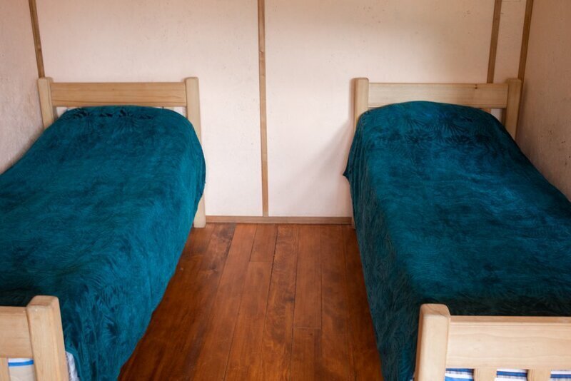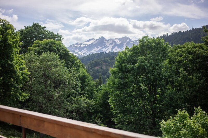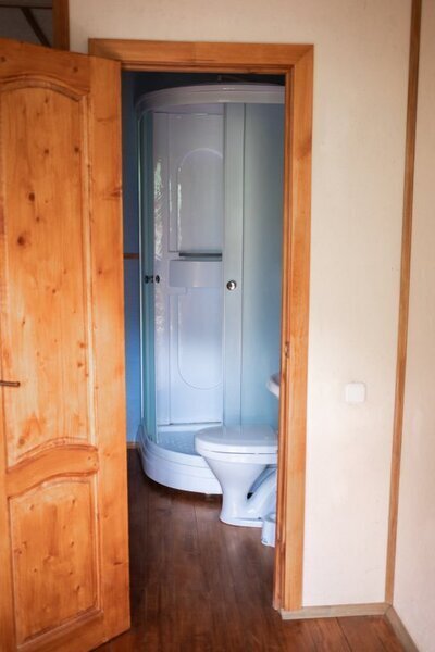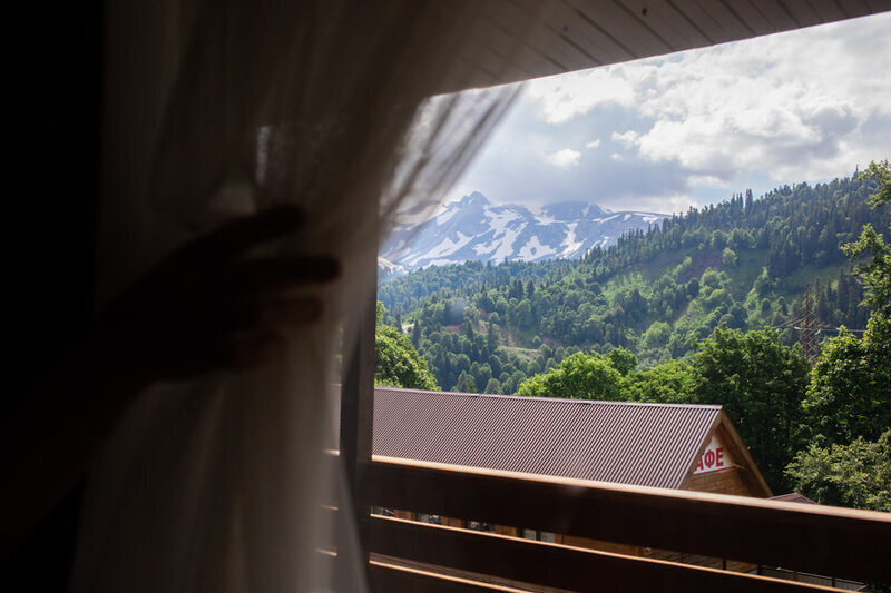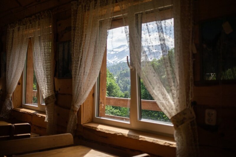 Из номеров на двоих открывается вид на горы. Каждый номер оборудован санузлом с душем.