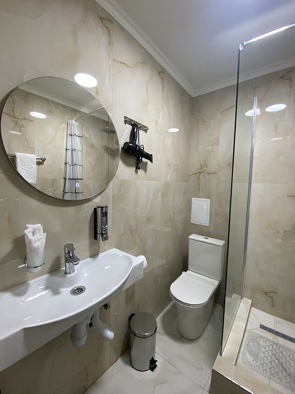 Номер состоит из спальной, ванной комнаты и балкона. В номере есть телевизор, стол, стулья, чайный набор, мини-холодильник, прикроватные тумбочки. Ванная комната с раковиной и душем, также имеются индивидуальные наборы косметических средств для гостей. Отопление. Комфортную температуру в летнее время обеспечивает сплит система кондиционирования, на втором этаже, уточняйте.