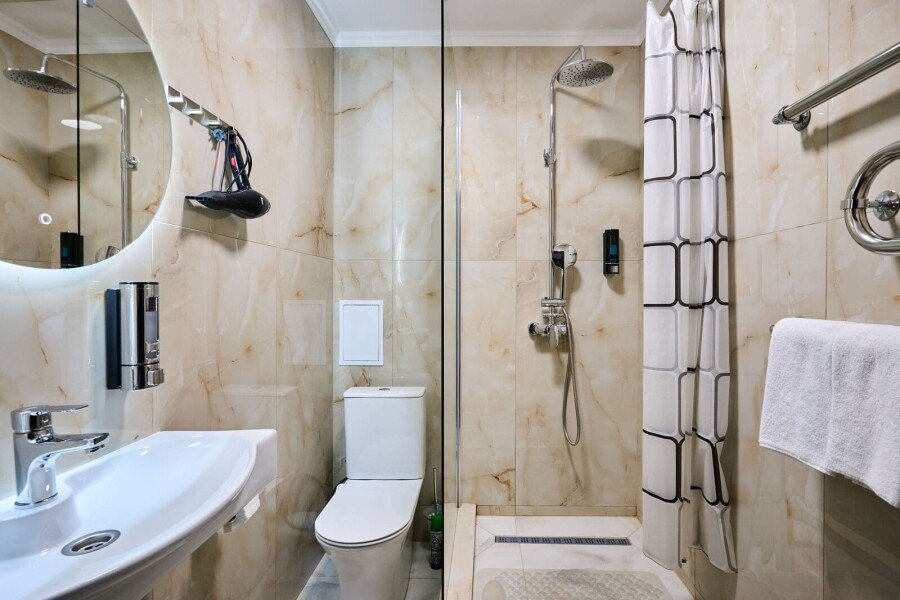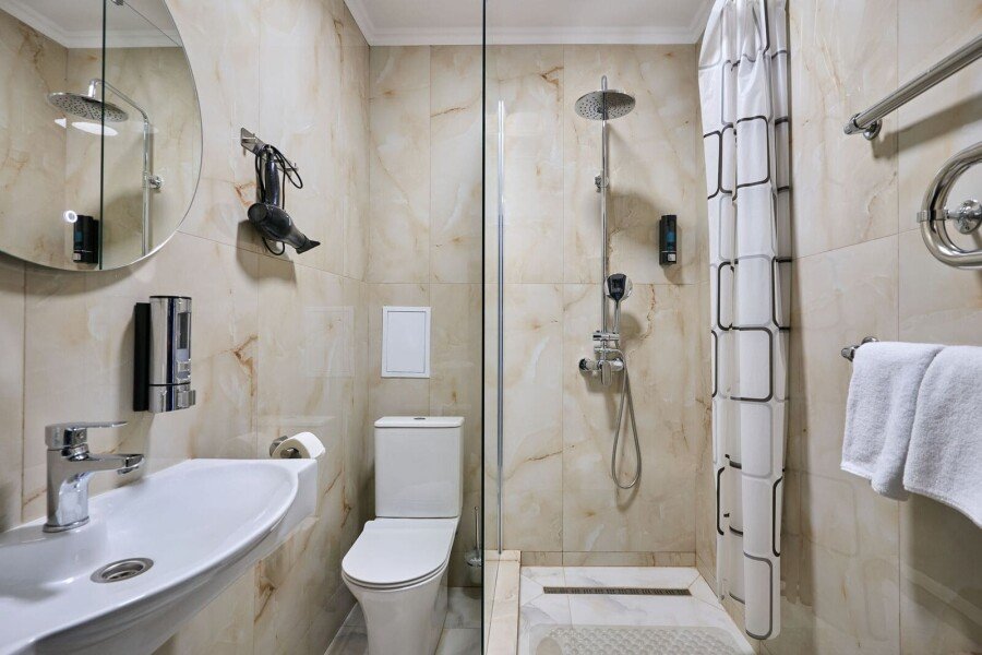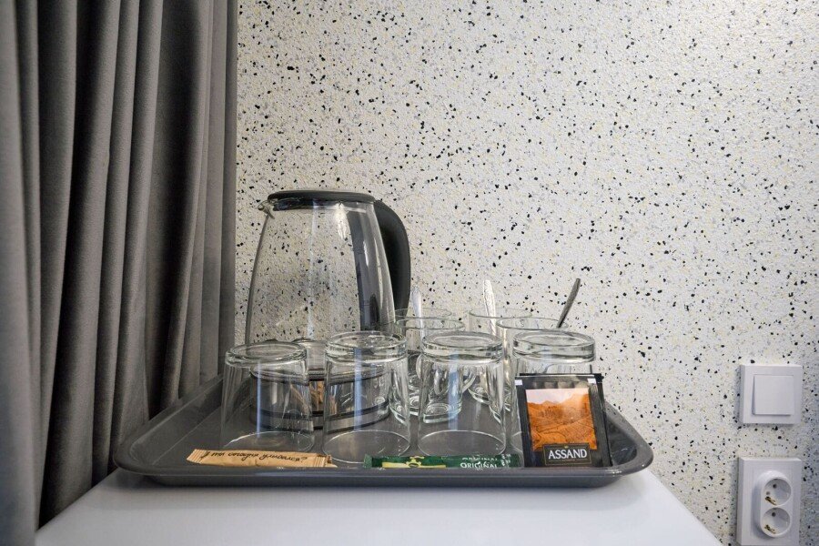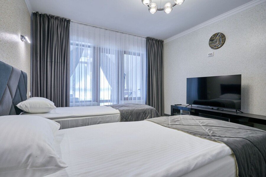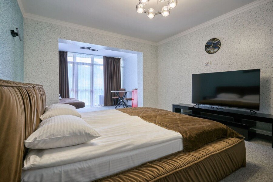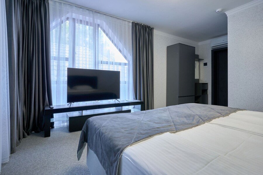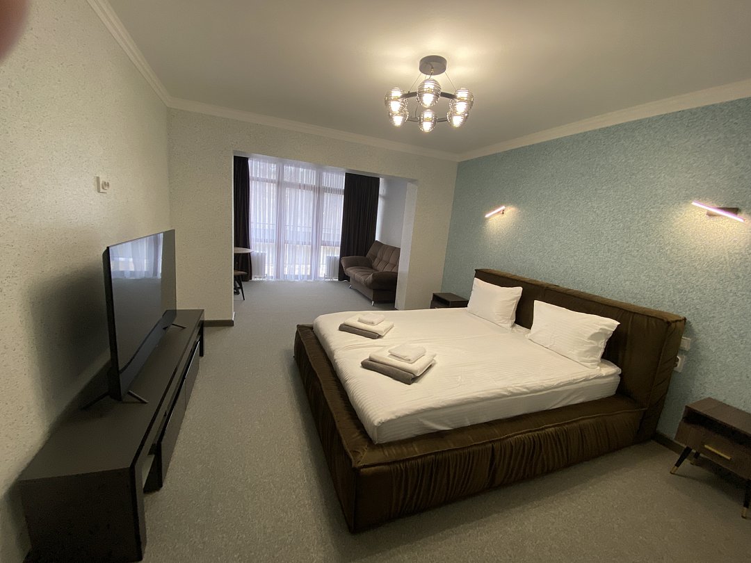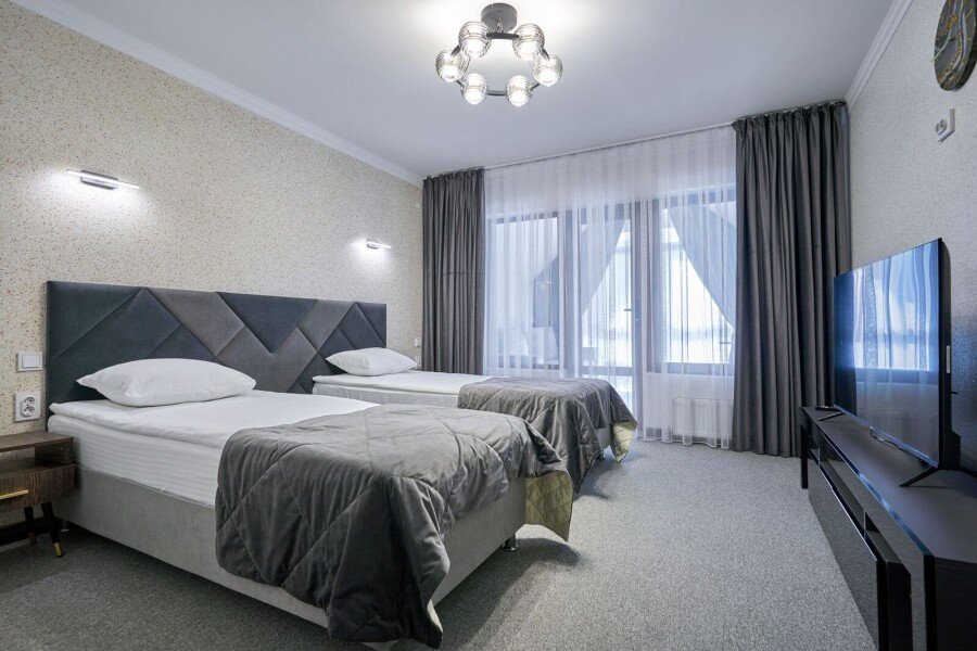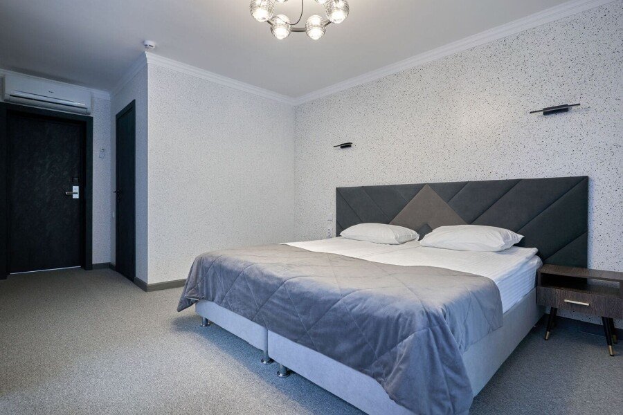 Номер состоит из спальной, дополнительной комнаты, ванной комнаты, есть номера с балконами или без. В номере есть телевизор, 2 мягких стула, стол, мини-холодильник, чайный набор, шкаф, прикроватные тумбочки. Ванная комната с раковиной и душем, также имеются индивидуальные наборы косметических средств, тапочки и халаты для гостей. Есть центральное отопление. Комфортную температуру в летнее время обеспечивает сплит система кондиционирования.