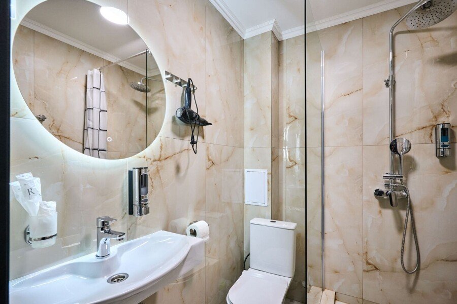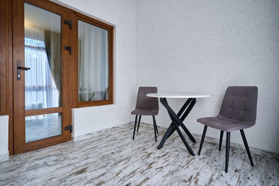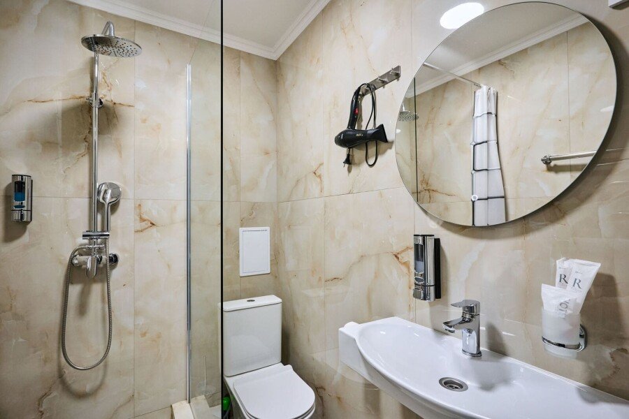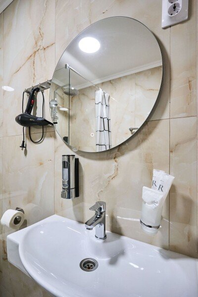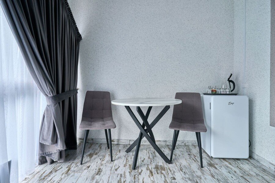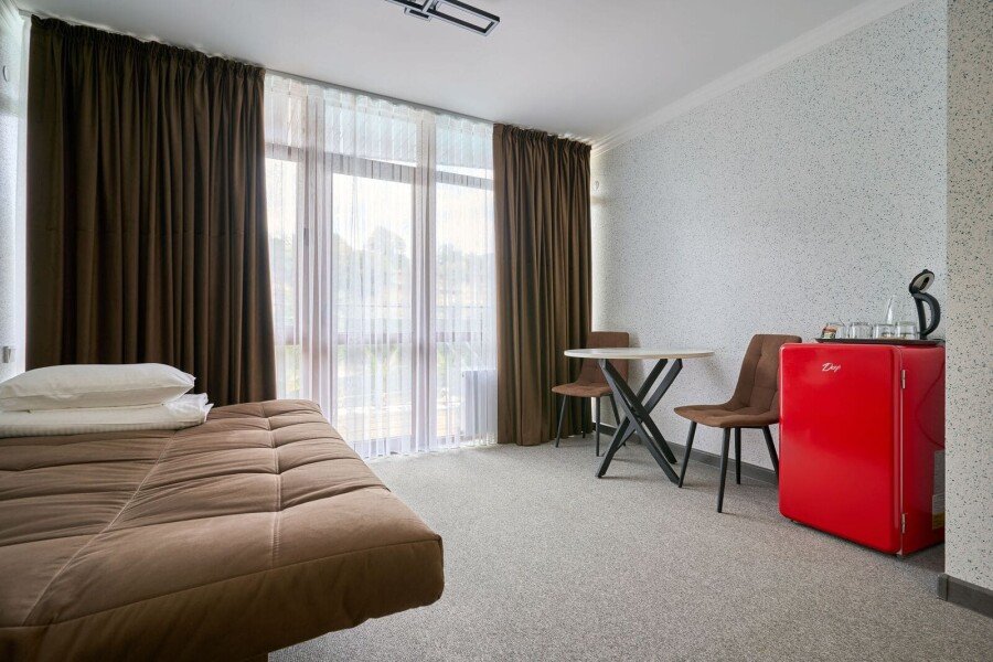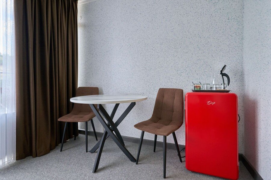 Номер состоит из спальной, ванной комнаты и балкона. В номере есть телевизор, стол, стулья, мини-холодильник, прикроватные тумбочки. Ванная комната с раковиной и душем, также имеются индивидуальные наборы косметических средств для гостей. Отопление. Комфортную температуру в летнее время обеспечивает сплит система кондиционирования, на втором этаже, уточняйте.