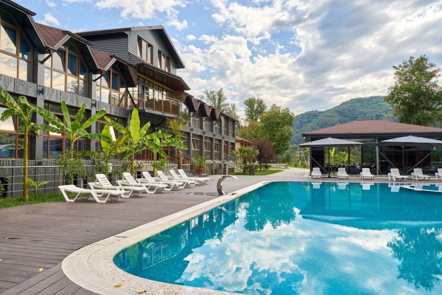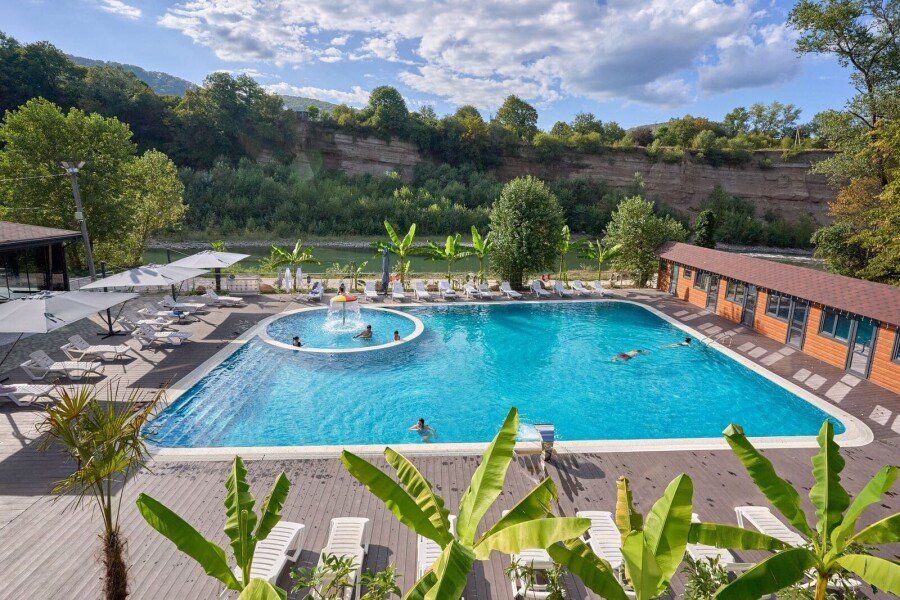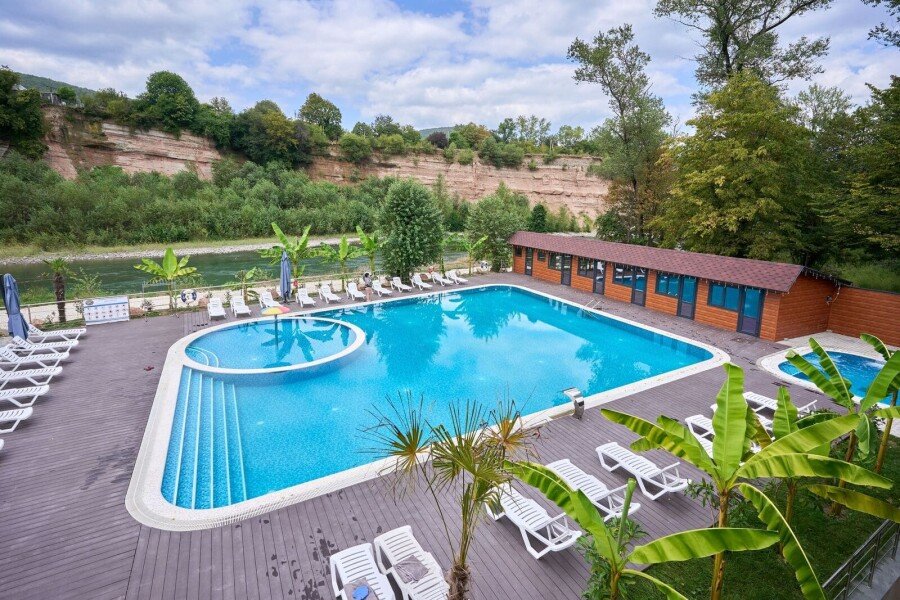 Семейный отдыхДостоинства. Здесь есть все для комфортного времяпрепровождения: просторные, уютные номера, прекрасный бассейн, а всего в 20 метрах от базы - живописная река Белая с отличными местами для купания. База также располагает уютной банькой, беседками с мангалами и кафе, работающим с утра до вечера. Весь персонал очень внимателен и заботлив, особенно хочется отметить администратора Елену, которая с первых минут окружила нас вниманием и заботой. Для любителей активного отдыха предлагаются интересные маршруты для рафтинга и джиппинга. Вечерами на территории базы звучит живая музыка. Мы отдыхали большой компанией и все без исключения остались в восторге! Такое редко бывает. Обязательно вернемся сюда снова!