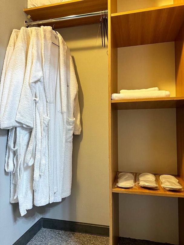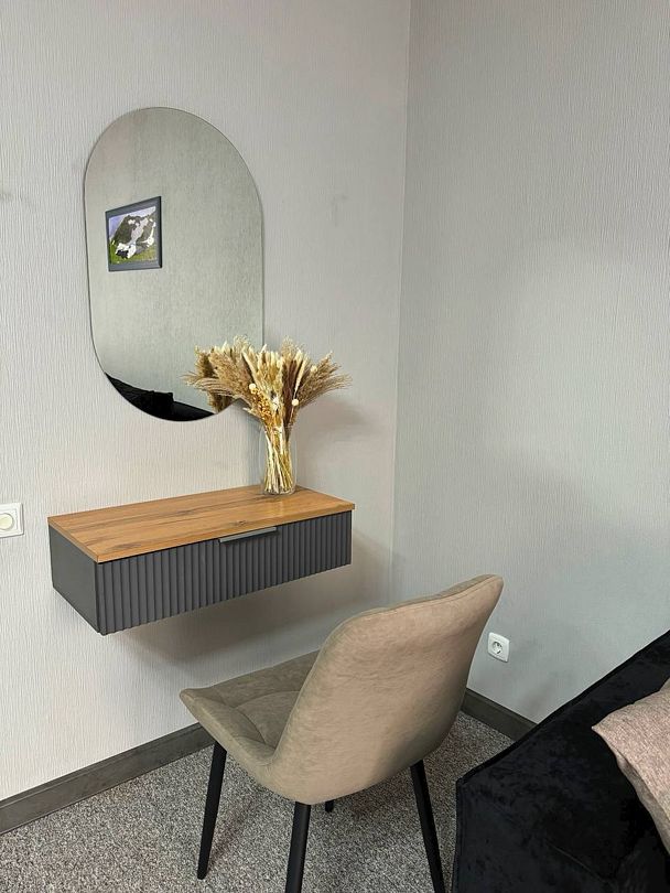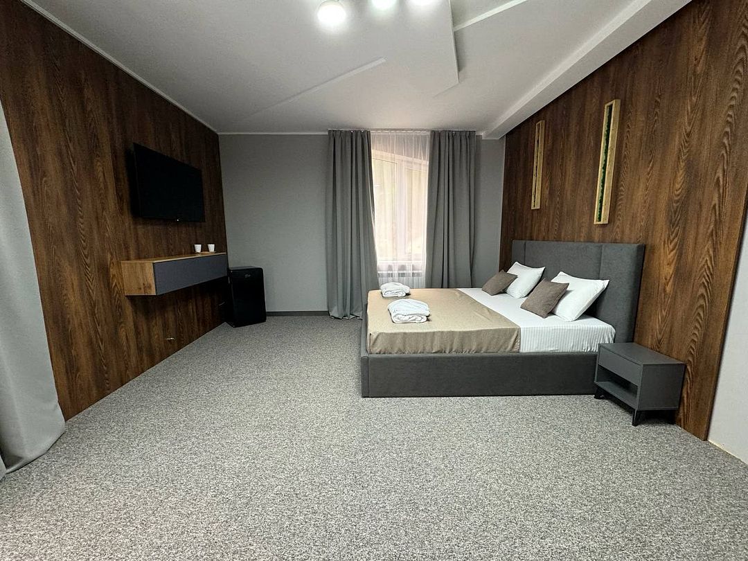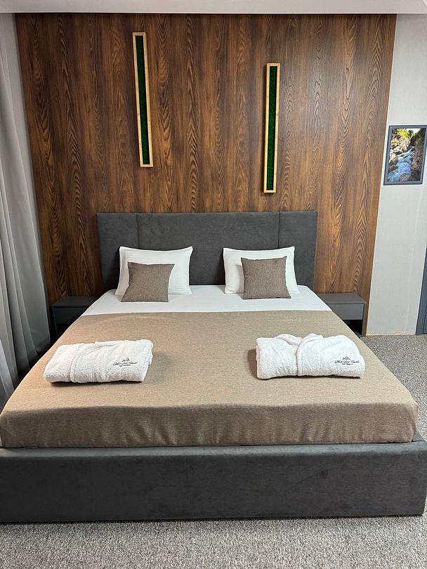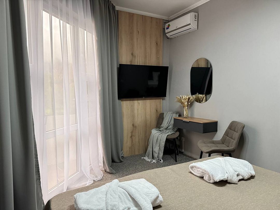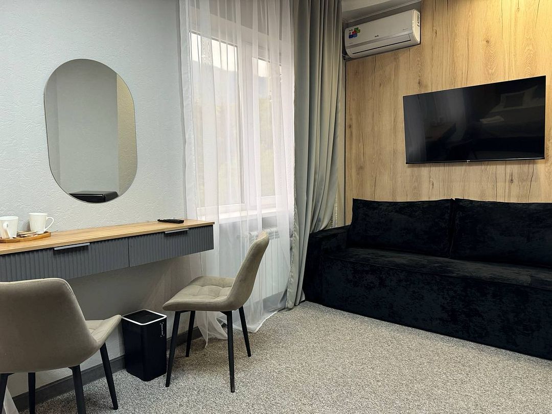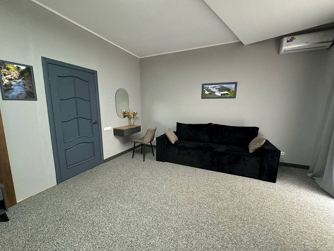 Двухкомнатный номер категории полулюкс 35 кв м с панорамными окнами, балконом и видом на горы расположен на 3-ем этаже.