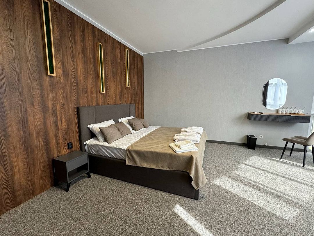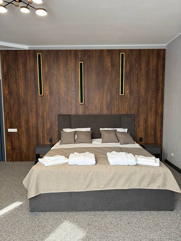 Отель представляет собой похожий на замок коттедж и предлагает для размещения несколько номеров различных категорий — от «стандарта» до класса «люкс» вместимостью до 5 человек.