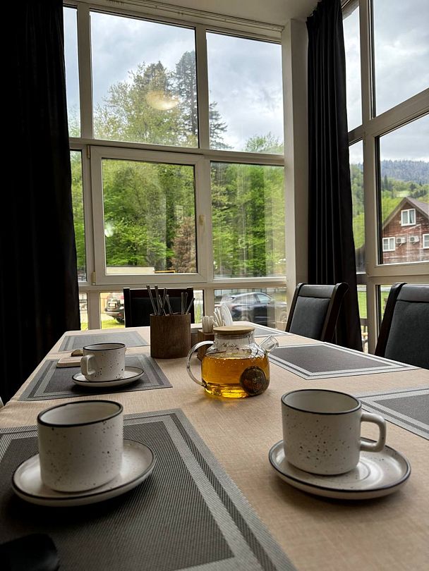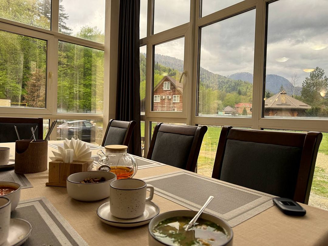 Попробовать множество вкусных блюд можно в уютном ресторане, из окон которого открывается живописный вид на окрестности.