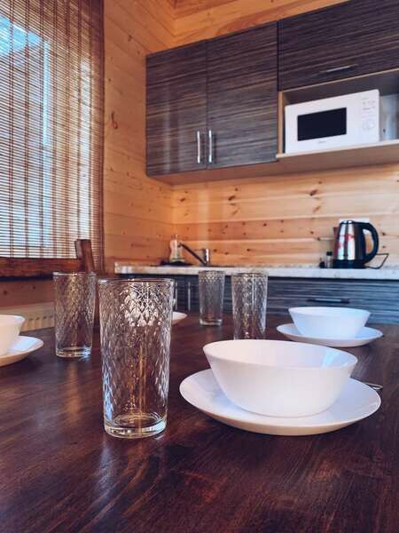 Каждый дом имеет собственную кухню, оснащенную всей необходимой техникой и посудой.