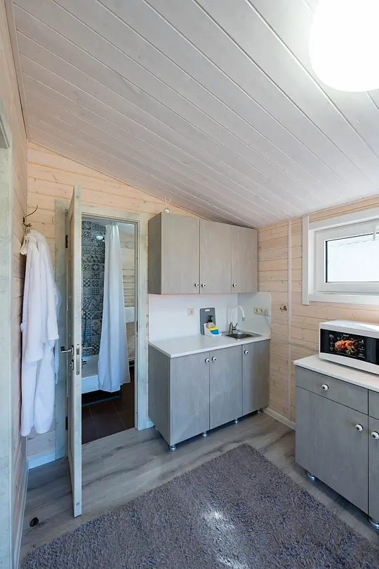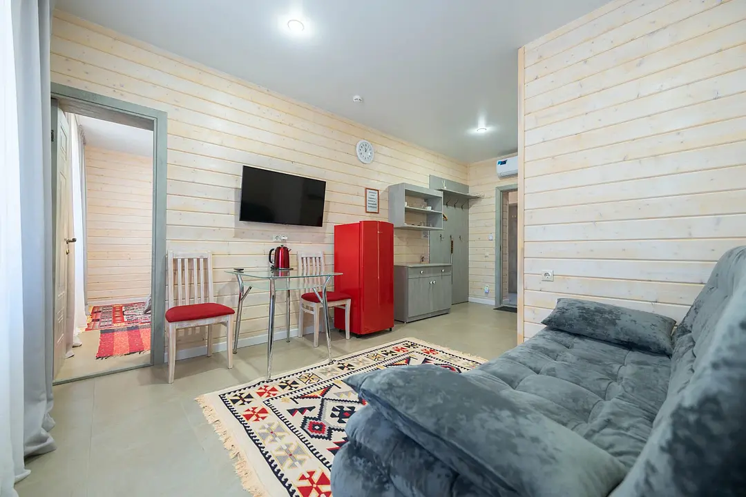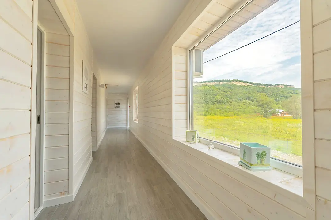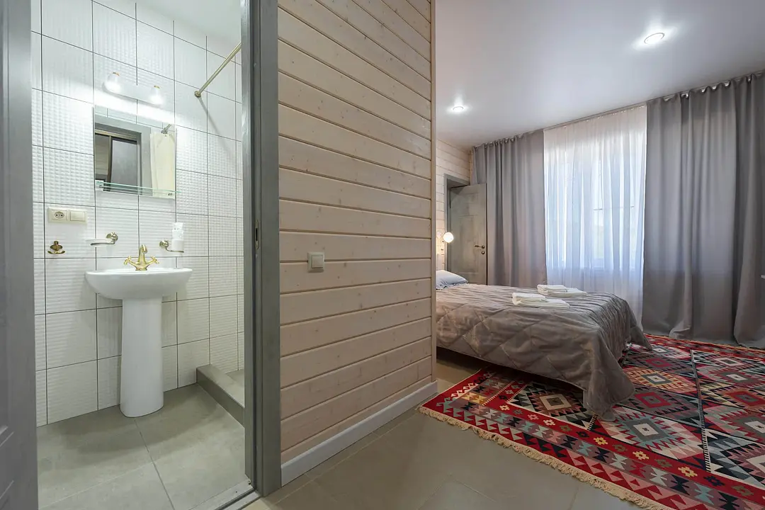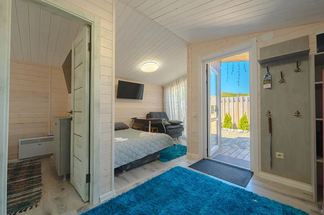 Номера оформлены в эко-стиле с использованием натуральных материалов, а постельное бельё из чистого хлопка подарит вам особенно приятные моменты отдыха. Из окон открываются потрясающие виды на горные пейзажи и лесные просторы, которые меняются в зависимости от времени суток.
