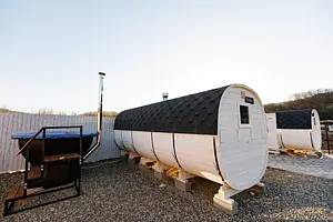 Для бочек используются веники с запарками, чтобы создавать аромат и брызгать на камни.