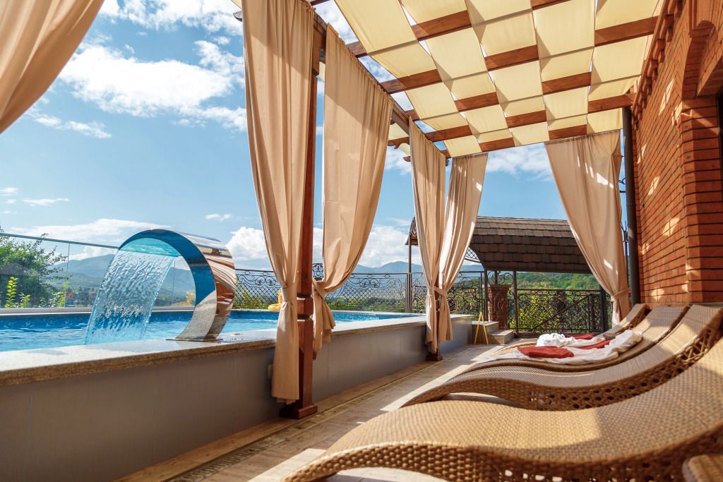 Тип бассейна: открытый бассейнВода в бассейне: бассейн с минеральной водой, подогреваемый бассейнРядом с бассейном: шезлонгиТемпература в бассейне: 30 °CОткрытый термальный бассейн с панорамным видом на живописные горные вершины Уна-Коз манит посетителей круглый год. Чаша бассейна оборудована гидромассажными зонами и эффектной подсветкой, создающей уютную атмосферу в вечернее время. Бассейн выходит на открытую террасу с плетеной мебелью, где гости могут насладиться отдыхом и панорамными видами.