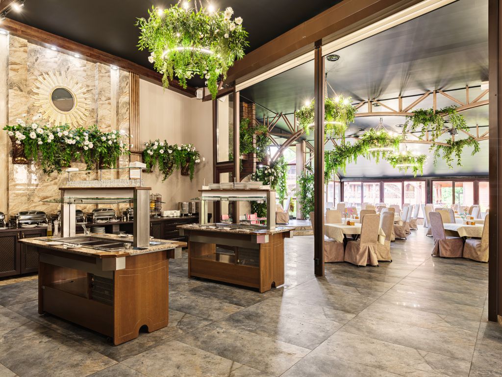 Ресторанный комплекс включает в себя ресторан а-ля карт «Даховская Слобода» и ресторан шведской линии, где проходят завтраки и ужины. В отеле можно провести торжественное или деловое мероприятие вместимостью до 50 человек. Зал оснащён мультимедийной техникой.