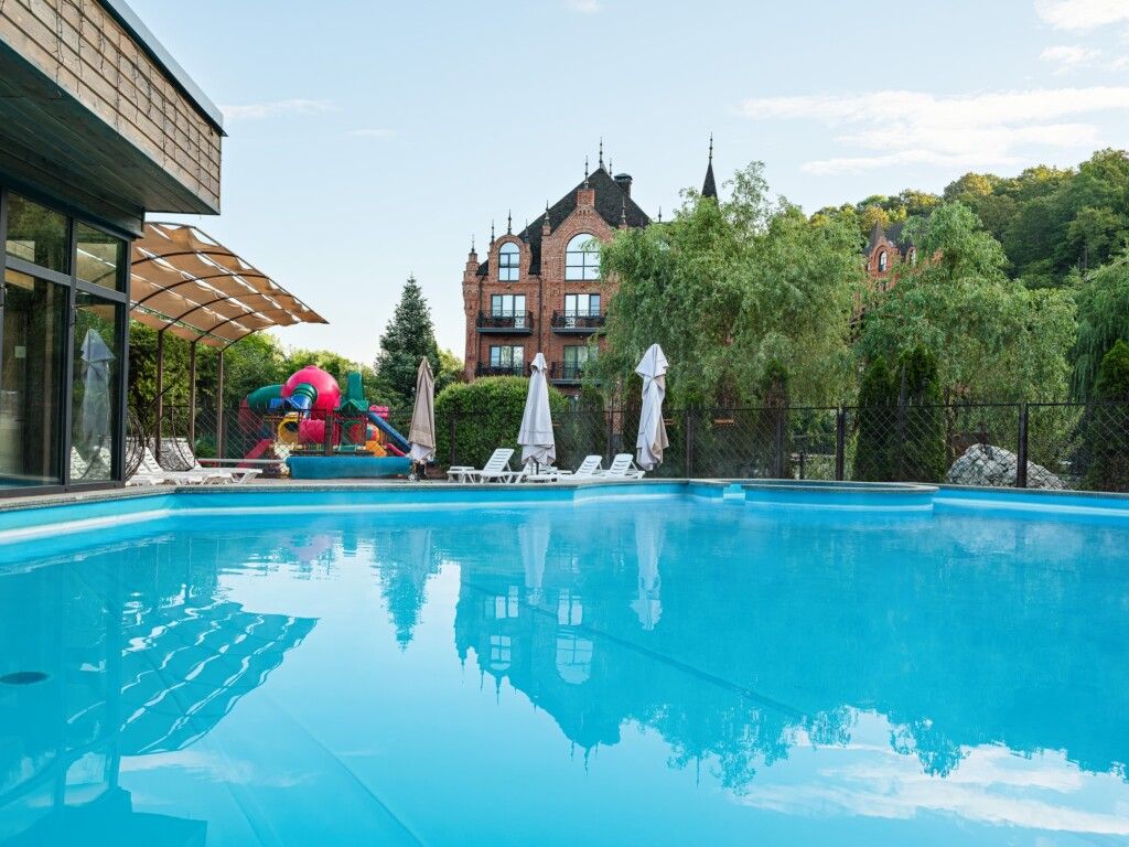 Бассейн тёплый, чистый.