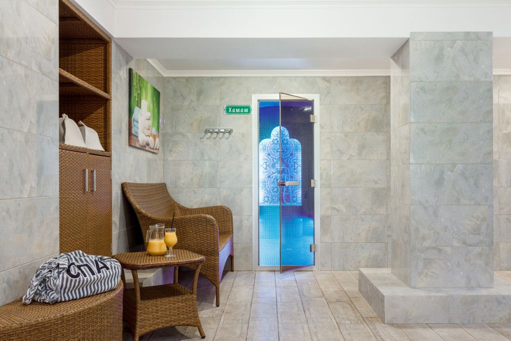 Подогреваемый бассейн находится в СПА-зоне, которая находится в СПА-корпусе и пользоваться ей могут только проживающие этого корпуса. Остальные гости могут пользоваться общим бассейном и саунами общей зоны. Баня и услуги няни оплачиваются отдельно при заселении.