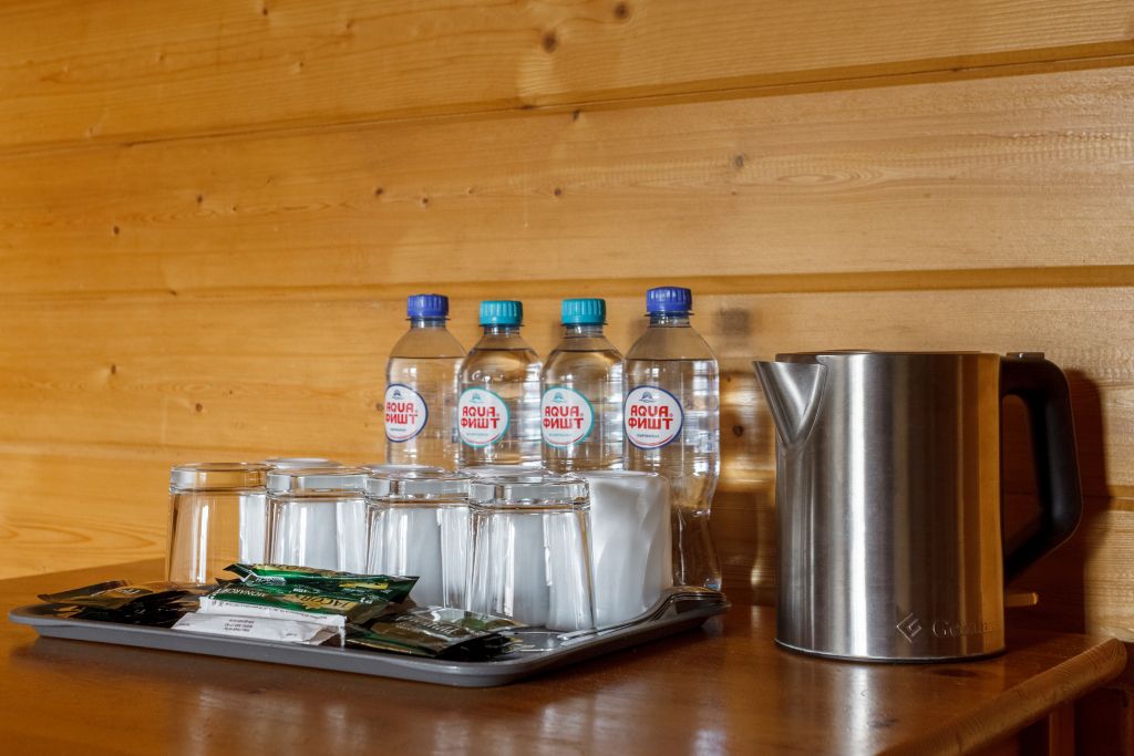 Гостям основной территории также доступен горячий бассейн и сауна с панорамным видом на хребет Уна-Коз. Есть зона джакузи, рядом с бассейном расположены шезлонги, на которых можно позагорать, предоставляются полотенца для купания. Бассейн, сауна, джакузи, шезлонги и полотенца для купания — предоставляются для проживающих бесплатно.