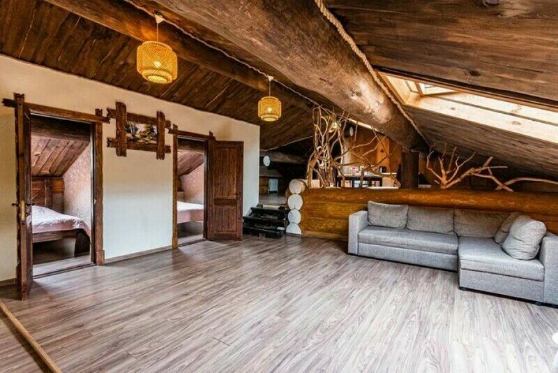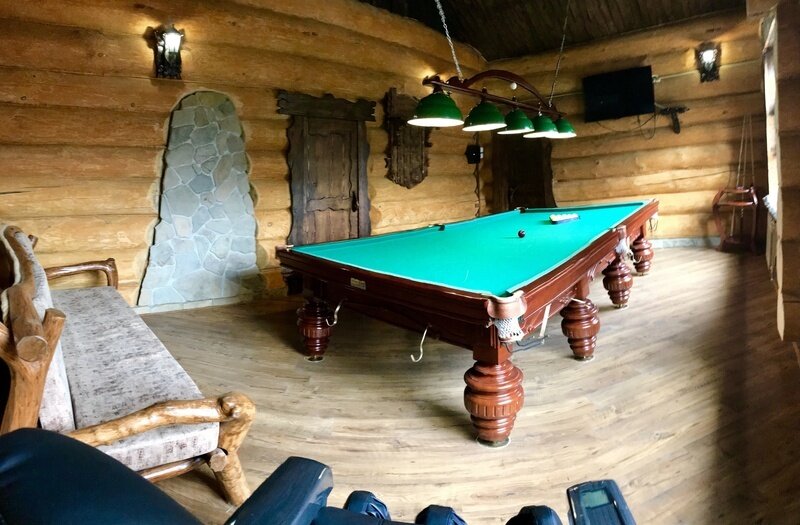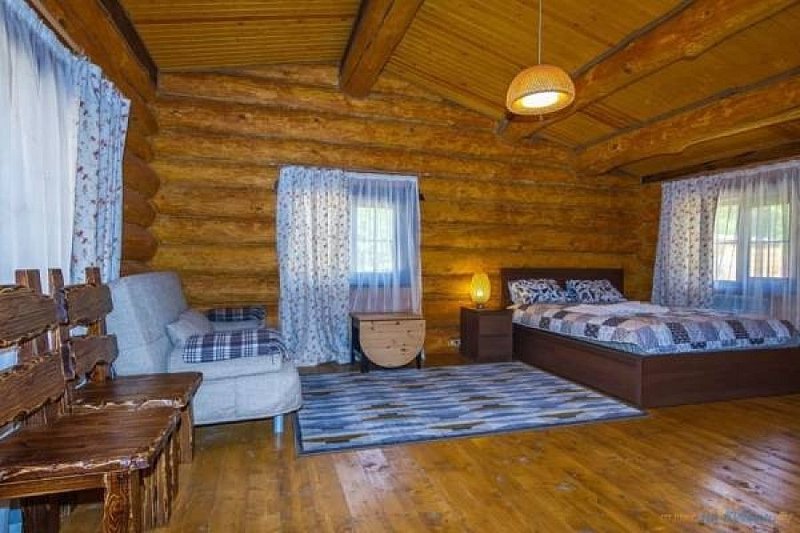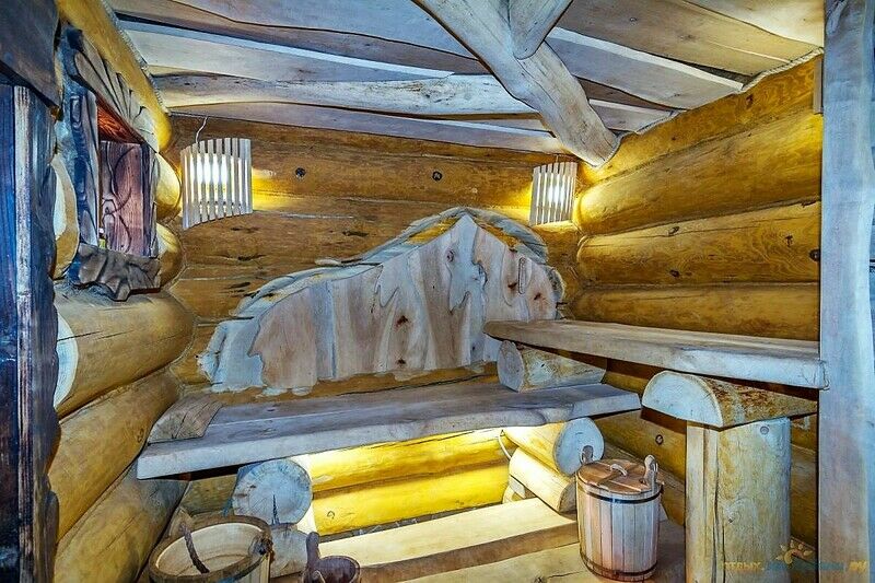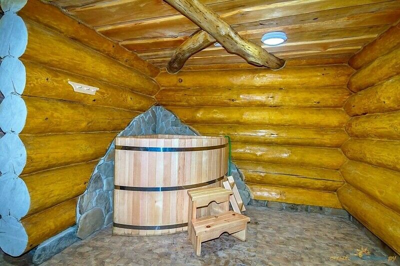 Баня более 200 м2 из рубленного северного бревна.В бане бассейн с холодной водой, бильярд, купель с горячей водой, сеновал, гостиная и сама русская парная. Вместимость до 10 человек.