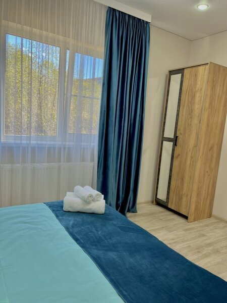 Второй этаж имеет отдельный вход и разделён на два идентичных номера на одной лестничной площадке. Каждый из номеров может вместить до 4 гостей. К услугам гостей в номере: изолированная спальня, гостиная с раскладным диваном, кухня, санузел и панорамные окна с видом на гору. Также доступна мангальная зона.