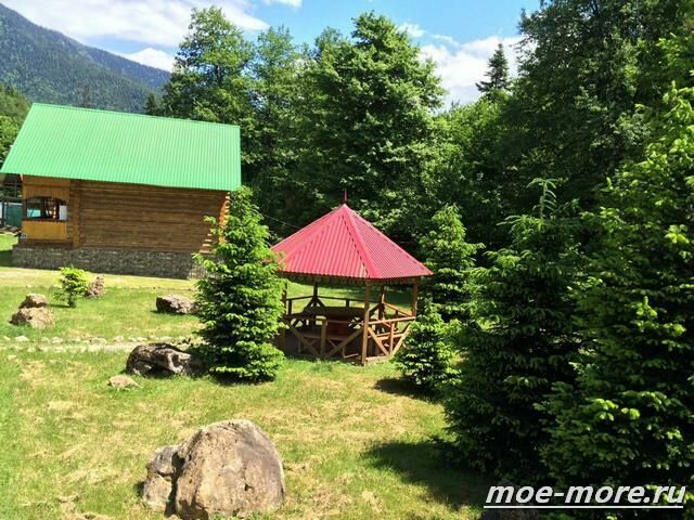 Если Вам нужен незабываемый отдых в поселке Гузерипль Республики Адыгея, то эти гостевые домики построены именно для Вас! Оказавшись в номерах туристической базы отдыха "Домики у реки", человек уже подсознательно чувствует себя расслабленным и отдыхающим. Хочется слиться с природой, погрузиться в активный отдых и забыть о том, что вскоре предстоит снова трудиться, и окунуться в обыденную суету. На территории "Домиков у реки" у Вас будет возможность полюбоваться великолепными окружающими пейзажами Кавказских гор. Также Вы сможете пожарить шашлык или любое другое блюдо на углях, удобно расположившись в беседке на территории туристической базы. В распоряжении отдыхающих двухэтажные срубы с двух и трех местными номерами со всеми удобствами. Хозяева Вам помогут с организацией увлекательных экскурсий по местным достопримечательностям, рафтинга, джиппинга и конных прогулок.