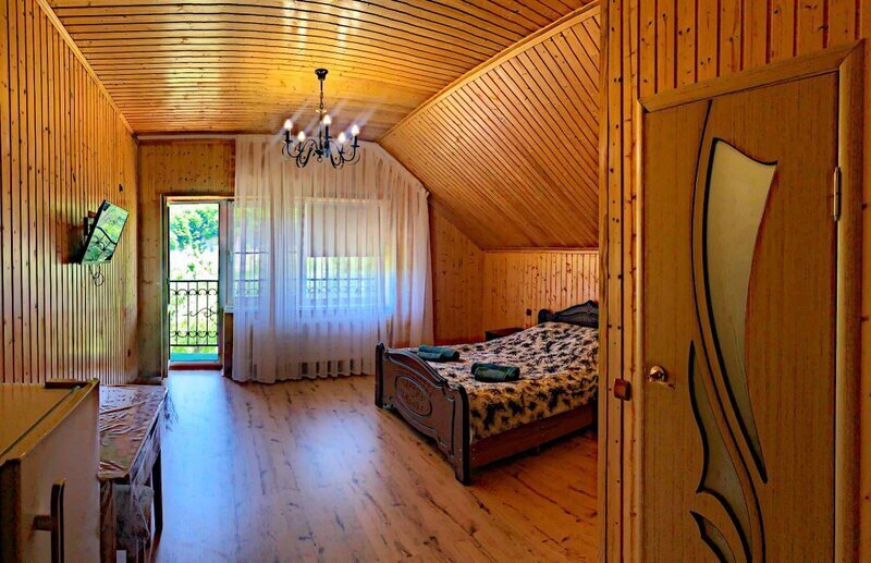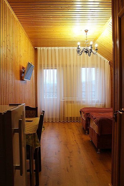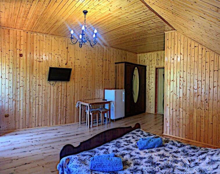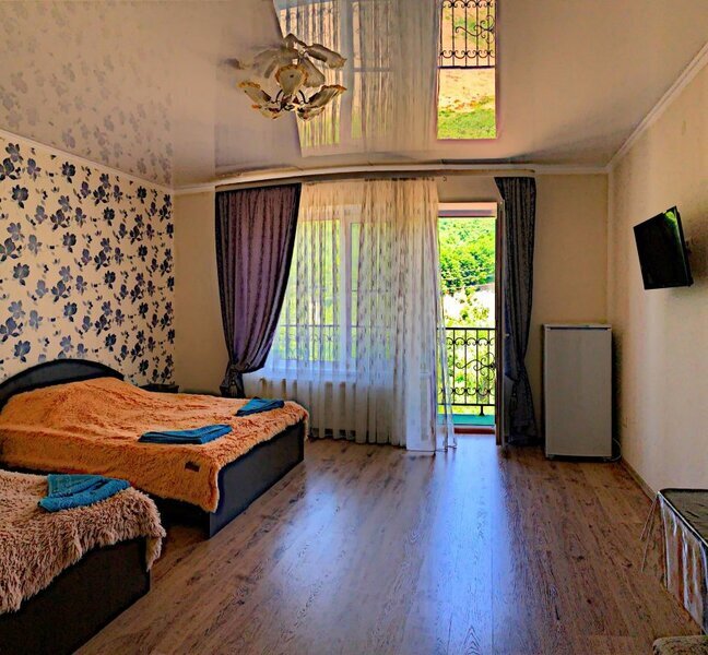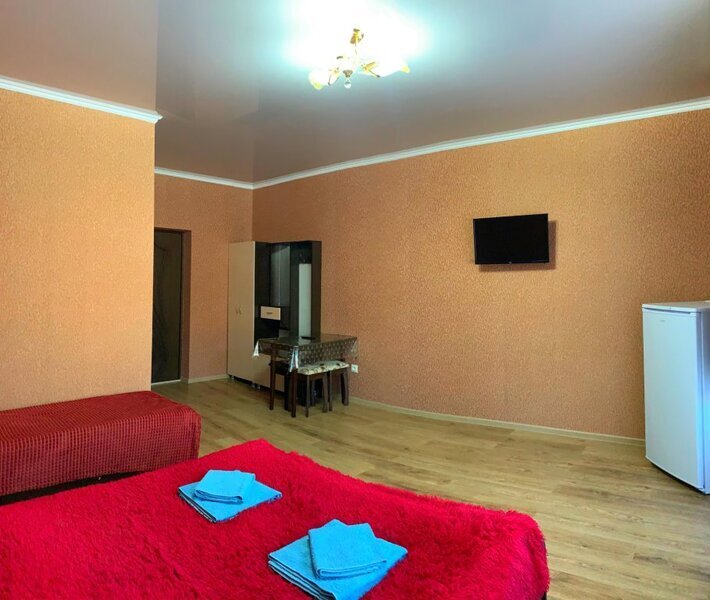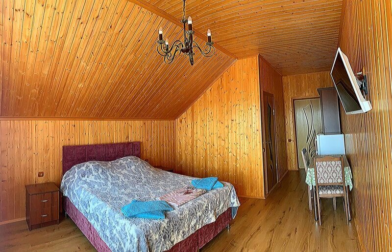 Гостевой дом предлагает своим гостям комфортабельные номера, среди которых выделяется номер эконом-класса. В номере есть все необходимые удобства для комфортного проживания: собственный пляж, эксклюзивное постельное бельё, затемнённые шторы, письменный стол, обеденная зона, холодильник и отопление.