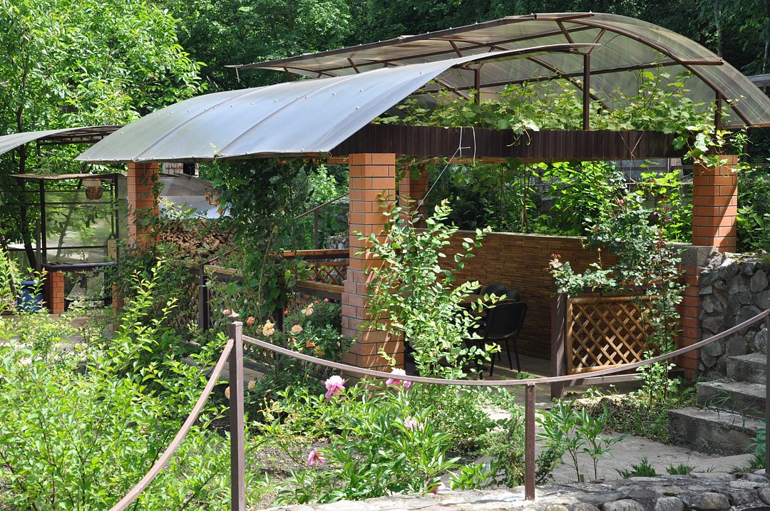На территории для отдыха туристов установлены четыре беседки и четыре мангала со всеми принадлежностями. Также к услугам отдыхающих имеется одна общая сауна на 6-8 человек и вторая, прилегающая к одному из 2-х комнатных номеров, рассчитанная на 4 человека. В гостевом доме имеется большая, светлая и просторная кухня-столовая, которая снабжена всей необходимой посудой и бытовой техникой (газовая и индукционные печи). Столовая выполнена в восхитительном роскошном стиле, который придётся по душе каждому гостю.