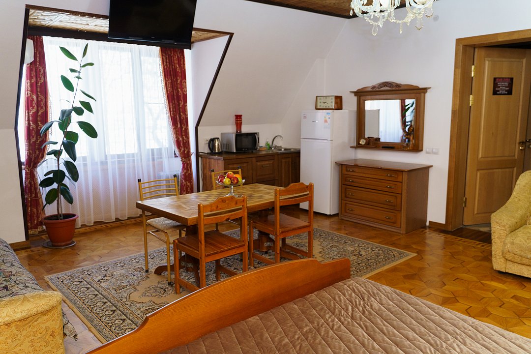 Путешествие с семьейРазгрузка от большого городаОтель как семейный особняк. Везде часы, хрусталь, плюшевые диваны и камины. Мы сняли номер с камином, и это такой кайф под него засыпать..с утра петухи и тишина. Отель небольшой, достаточно хорошая шумоизоляция. Отличный вай фай. У меня ощушение что отдыхала как в детстве, у бабушки. Завтраки, стол ломился и заботливая Маша. Просто мега женщина,всегда поможет, подскажет, я в восторге от нее. Баня тоже с камином и веникии травяной чай. Мы обязательно вернемся . Это место и правда волшебное!! Спасибо .