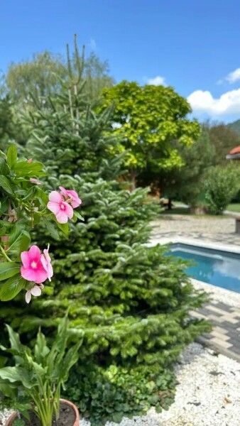 На территории гостевого дома есть баня и бассейн, где вы сможете расслабиться и насладиться природой.