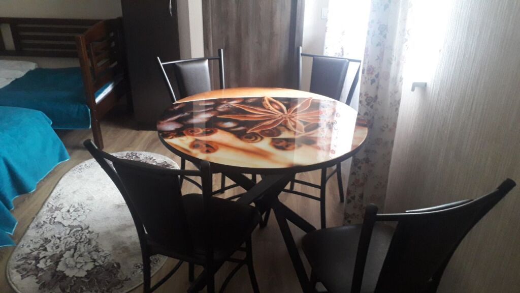 На территории частного дома есть беседка, парковочные места, сад и мангальная зона. В спальне установлены одна двуспальная и две односпальные кровати и телевизор. На кухне есть холодильник, электрическая плитка, микроволновая печь, чайник, посуда, столовые приборы, чай, кофе, сахар, соль, перец. Ванная комната оборудована душевой кабиной. В распоряжении гостей: фен, полотенца, тапочки, халаты, жидкое мыло, шампунь. Предоставляется постельное бельё. Подключён Wi-Fi. Есть терраса с видом на горы.