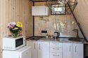 - кухня: электрическая плита, раковина, вся необходимая посуда, столовые приборы, бокалы, холодильник, микроволновка;