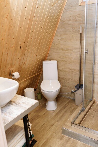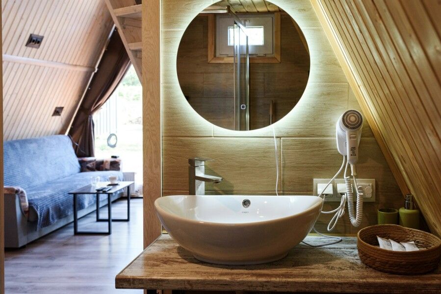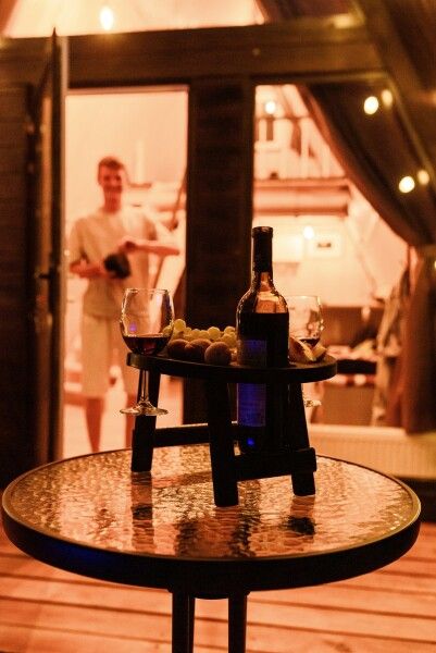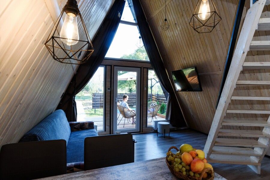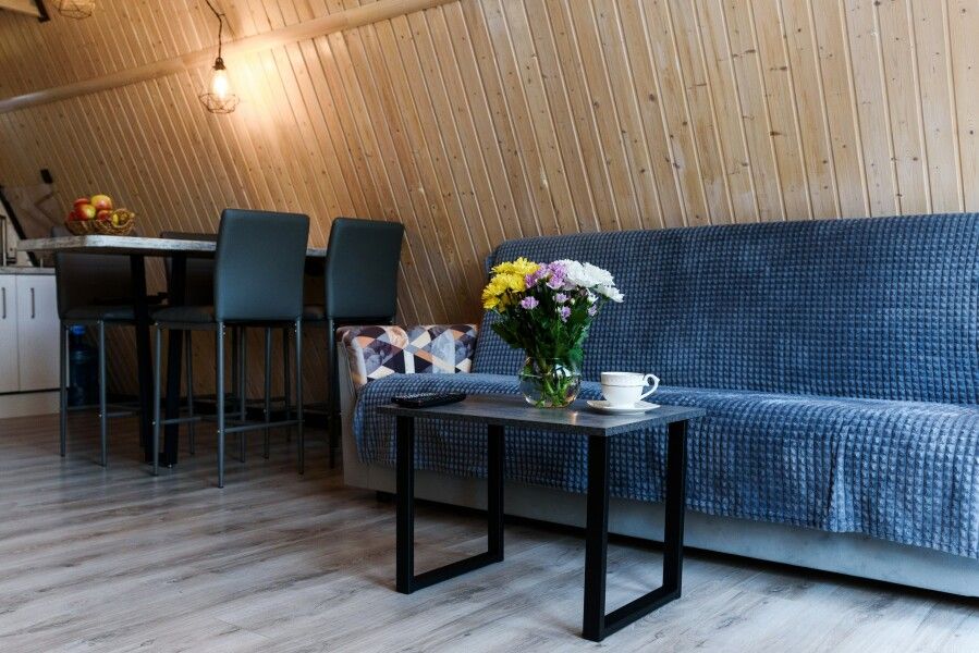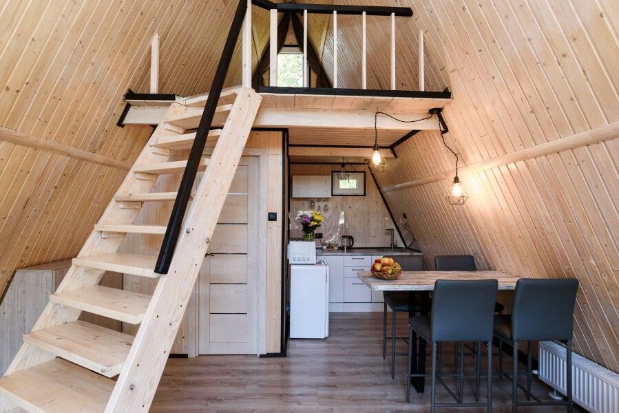 Очень комфортный и уютный домик в стиле лофт. Внутри есть все необходимое для комфортного проживания 24 человек. Комнаты не изолированы друг от друга.
