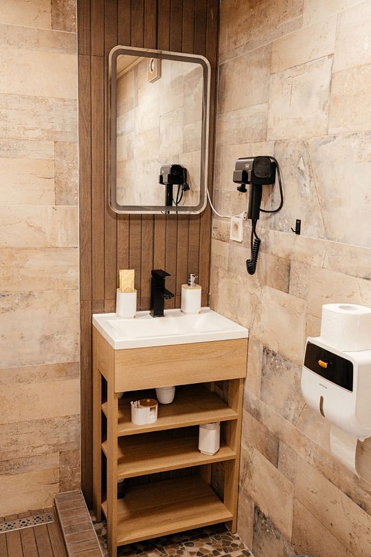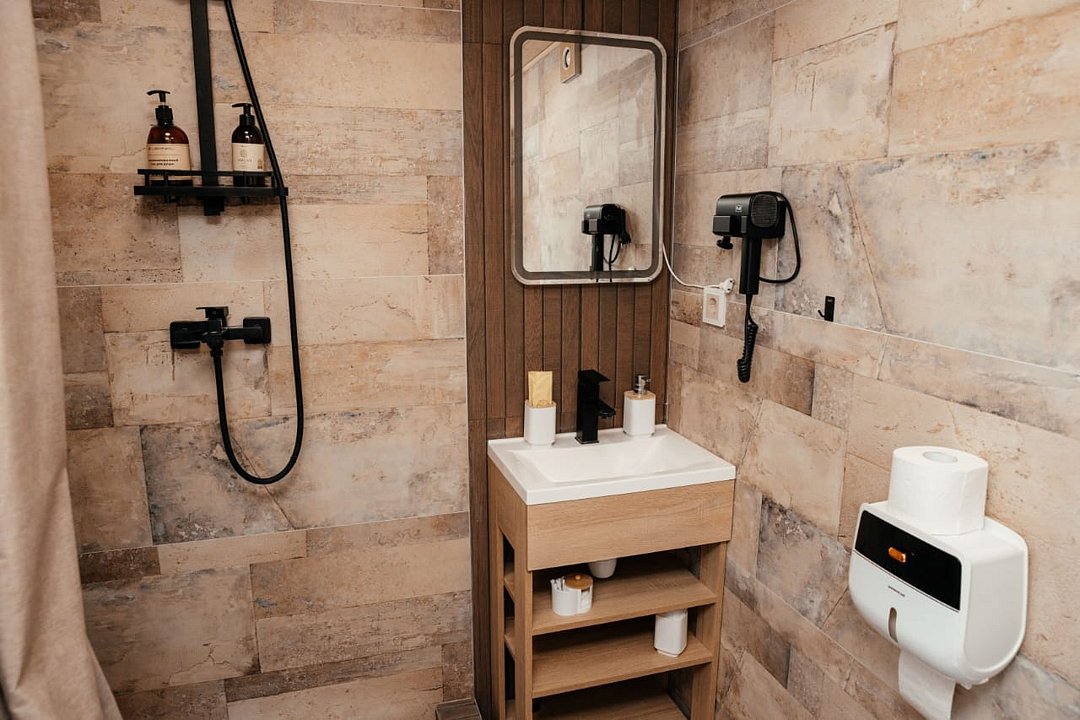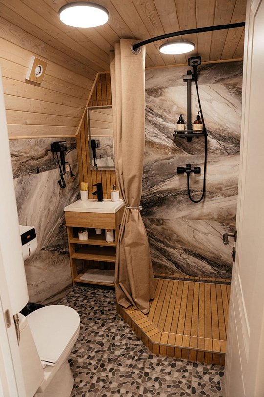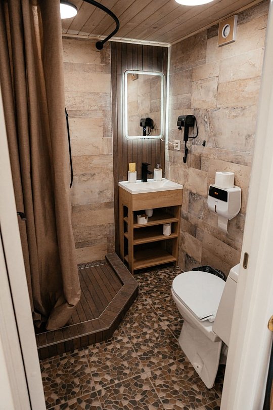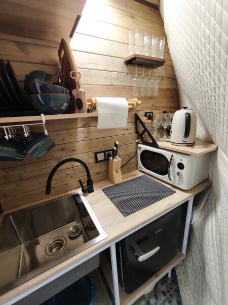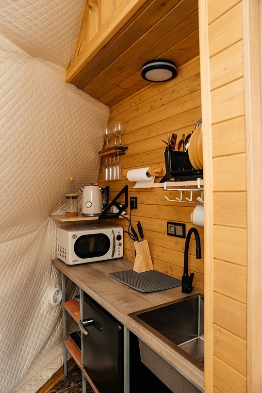 Сфера рассчитана на 2–4 человека и оснащена всем необходимым для комфортного отдыха: уютная кухонная зона, душевая и санузел. Вам не придется беспокоиться о бытовых мелочах — здесь позаботились об удобстве проживания!
