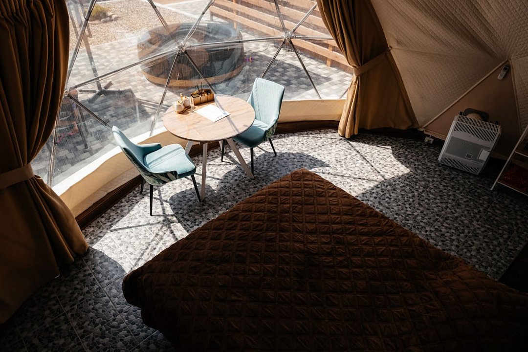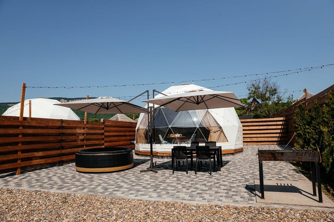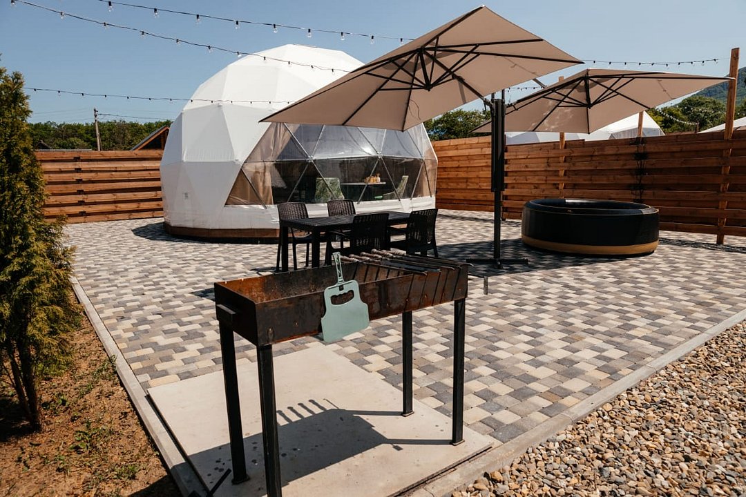 Каждая сфера глэмпинга оборудована всем необходимым для полноценного отдыха: уютные кухонные зоны, современные душевые и санузлы позволяют гостям полностью погрузиться в атмосферу роскоши и умиротворения. На территории их ждут разнообразные развлечения и удобства — открытый бассейн, мангал для приготовления ароматных блюд и индивидуальные джакузи с гидромассажем, дарящие незабываемые моменты релаксации.