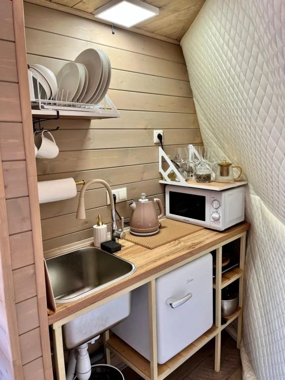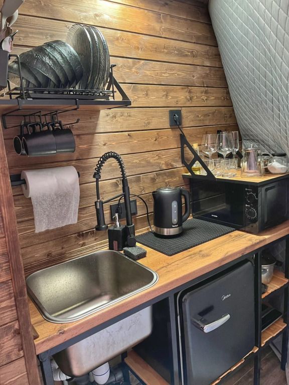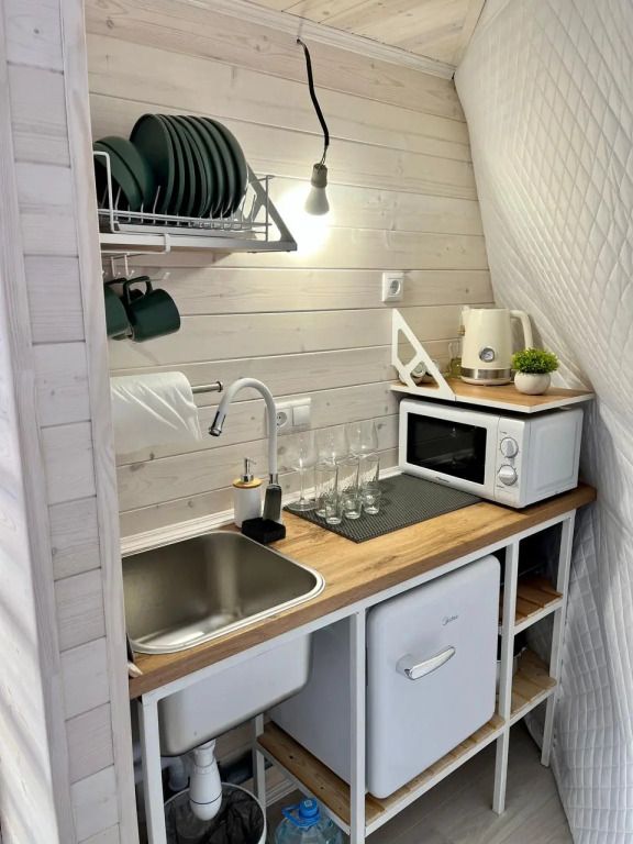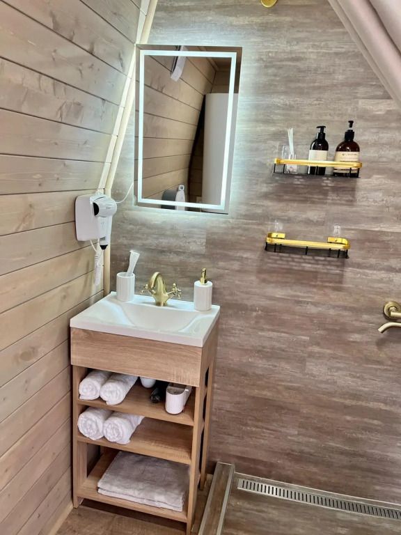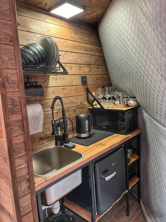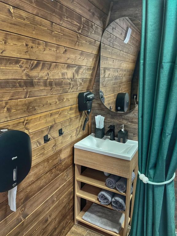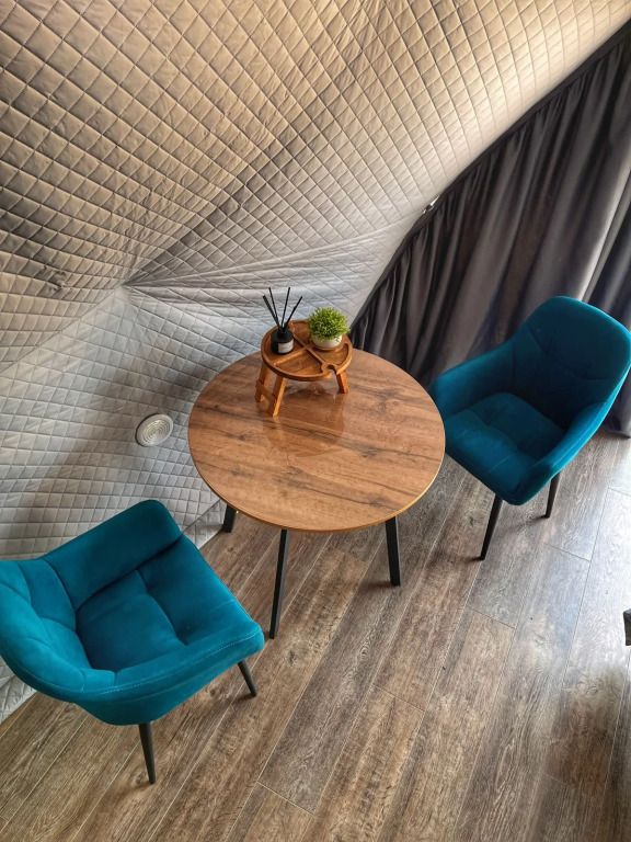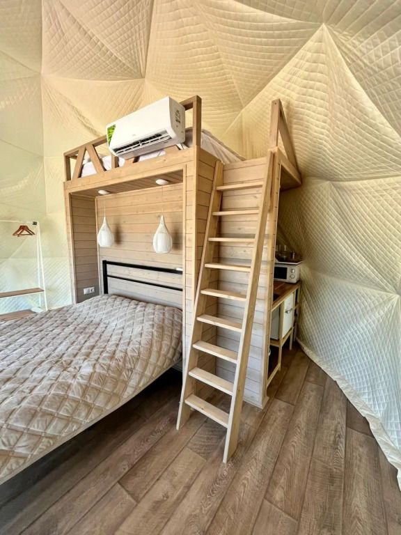 Сферы оборудованы: сплит-система, пол с отоплением, мини-холодильник, чайник, фен, микроволновка, посуда, водонагреватель, стол со стульями, двуспальная кровать, двуспальная кровать на втором ярусе, санузел, душевая, полотенца и умывальный набор для каждого гостя.