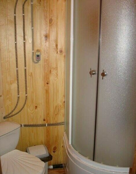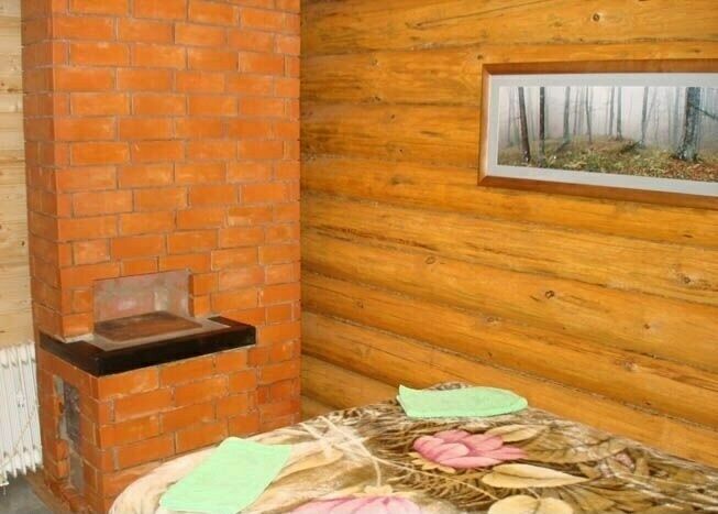 Помещение баньки двухуровневое. На первом этаже сруба – парилка, душевые кабинки, купель с холодной водой, санузел. На втором комната отдыха. Вместимость 4-8 чел.