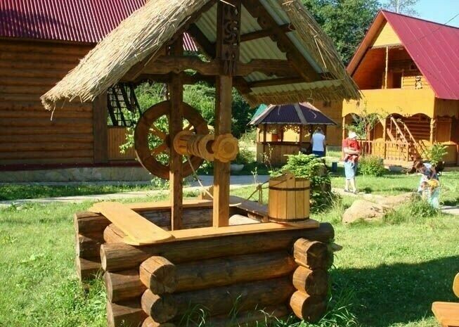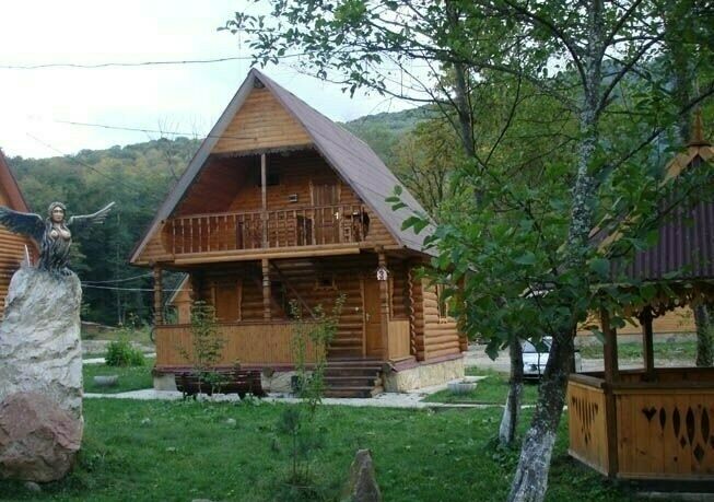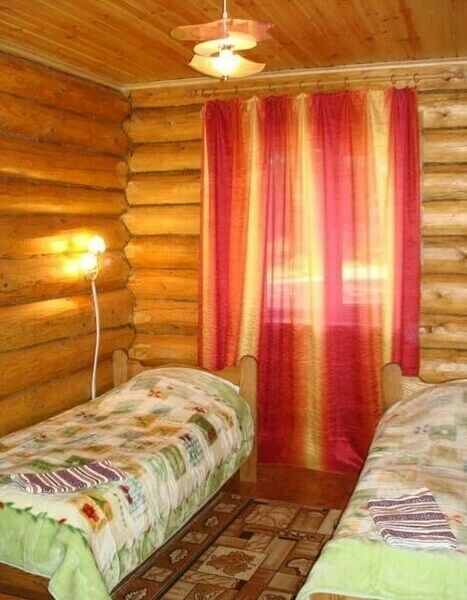 Для размещения предлагаются уютные деревянные срубы, выполненные в старорусском стиле и гармонично вписанные в лесной пейзаж. Каждый дом состоит из нескольких номеров, рассчитанных на проживание 2, 3 или 4 человек. В номере — душ (холодная и горячая вода), санузел, холодильник, телевизор. На территории — открытый бассейн, сауна, кафе, настольный теннис, беседки, мангалы. Любителям активного отдыха доставит массу удовольствия сплав по реке Белой на рафте, а также верховые прогулки по окрестностям на лошадях.