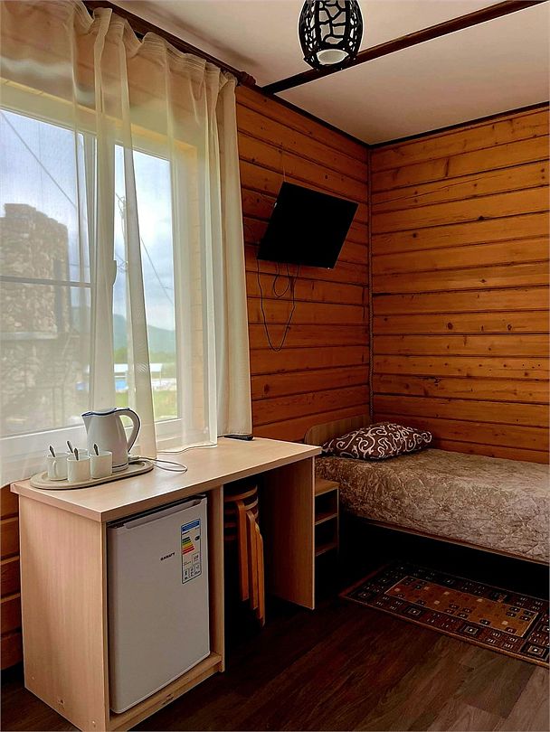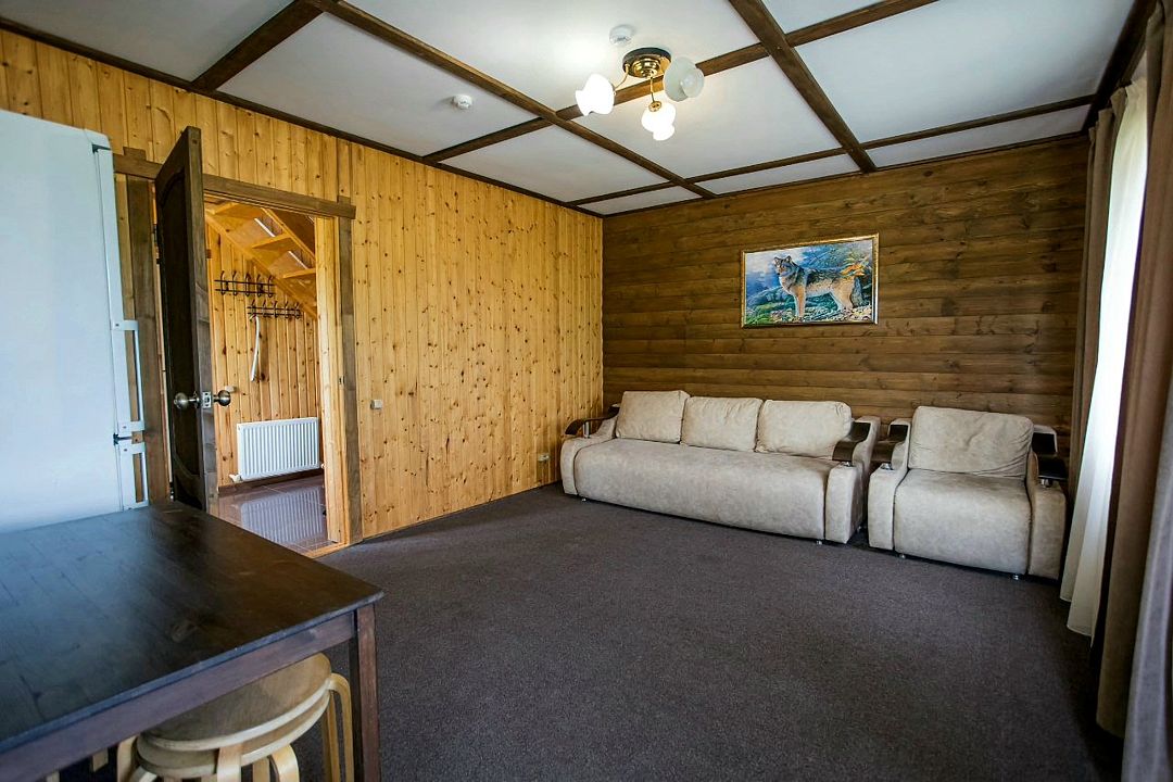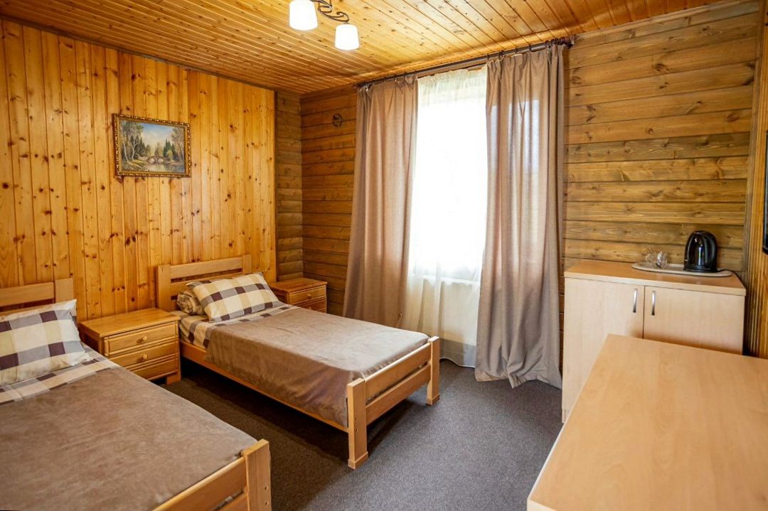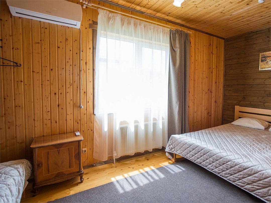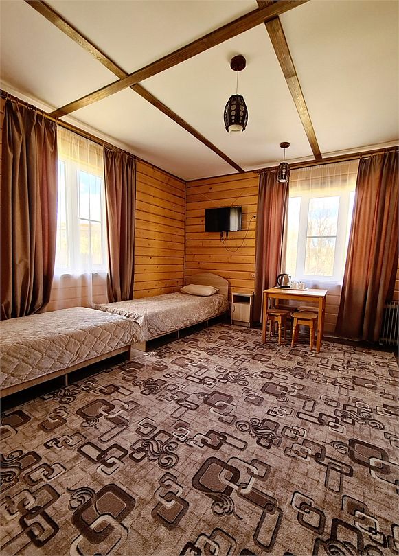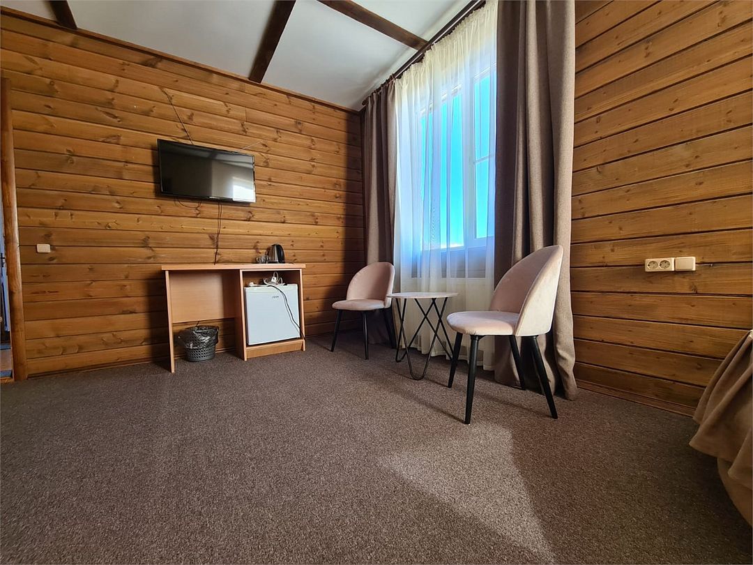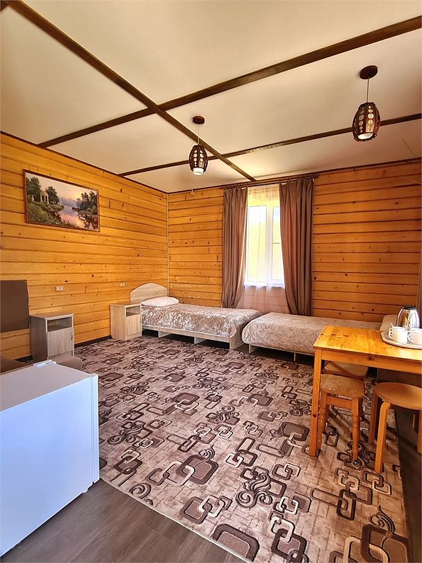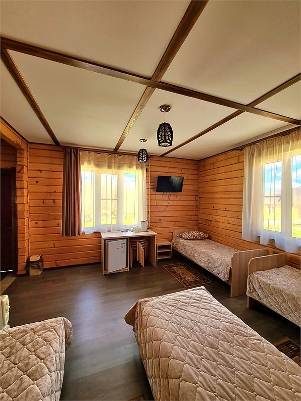 Четырехместный номер расположен в деревянном доме из сруба это однокомнатный номер для размещения четырёх человек.