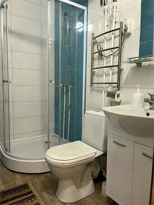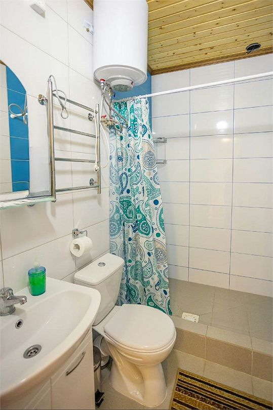 Просторный совмещенный санузел. Для каждого нашего гостя предоставляется комплект полотенец, и тапочки.