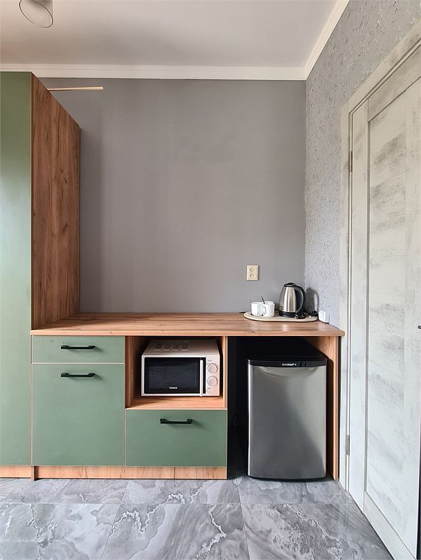 В распоряжении гостей — ТВ, сплит-система, холодильник, микроволновая печь, чайник, кружки.