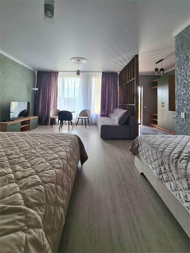 Двуспальная кровать 160*200, холодильник, телевизор, стол, шкаф или комод, чайник, кружки, (2-3 этаж кондиционер сплит-система) ванная комната.