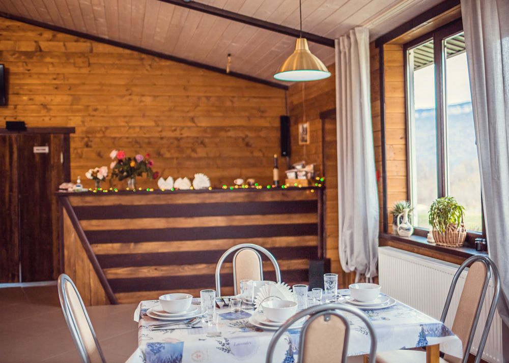 Вас ждёт новое уютное Кафе, с большим банкетным залом более 100 кв.м. Завтраки входят в стоимость всех номеров и домиков! Обеды и ужины по запросу. И также, кафе доступно для заказа — для проведения свадеб, дней рождений, корпоративов, и любых других мероприятий!