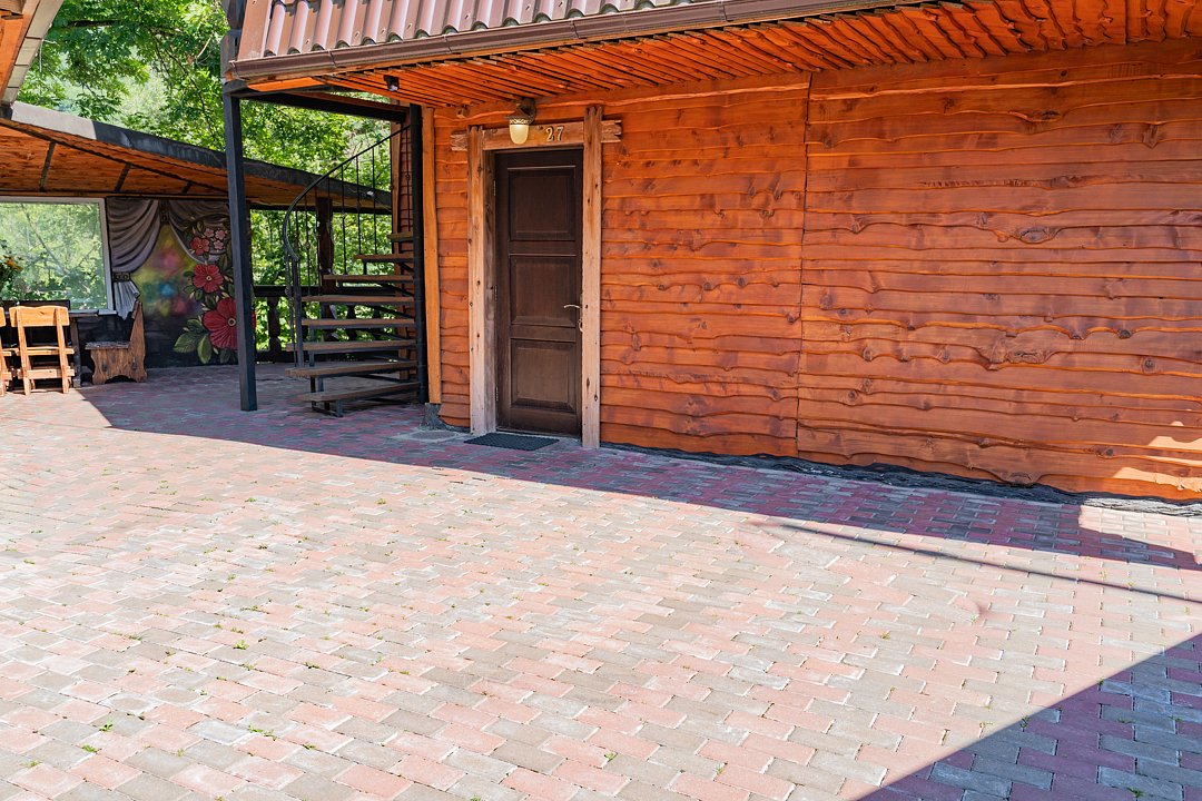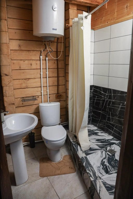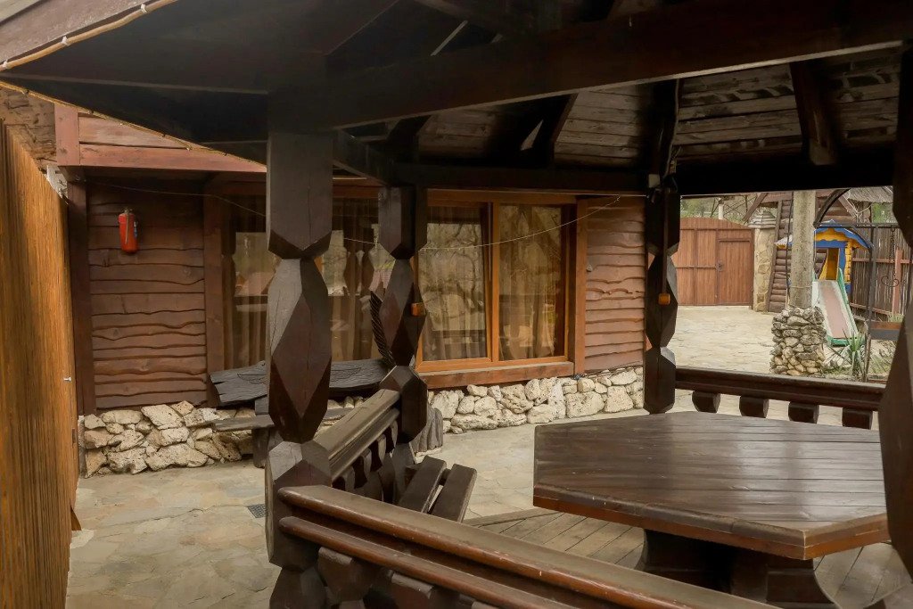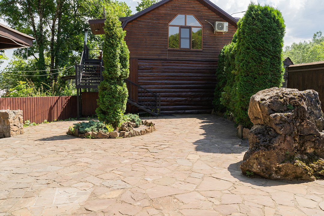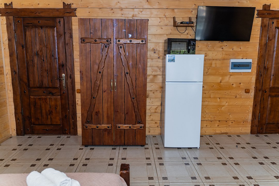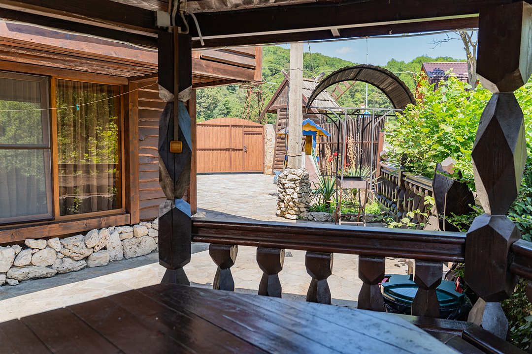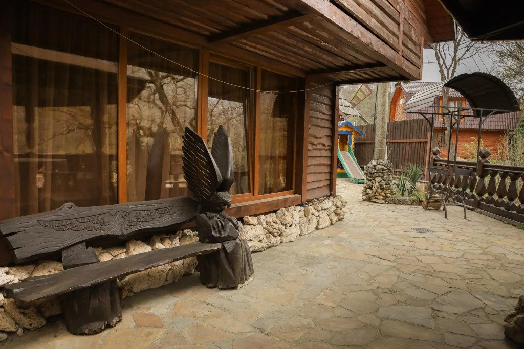 Бесплатно: подогреваемый бассейн, беседка, мангал, автостоянка для машин во дворе, фен по запросу. Домик сделан из дерева.
