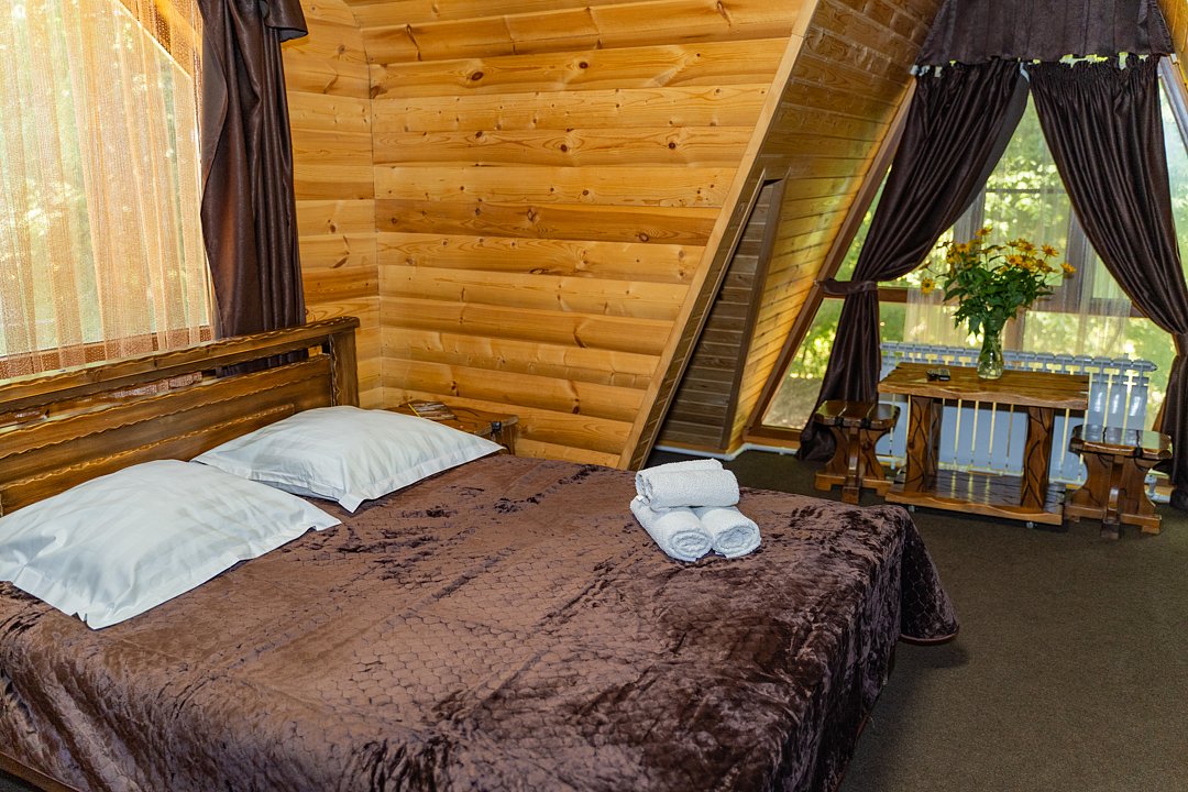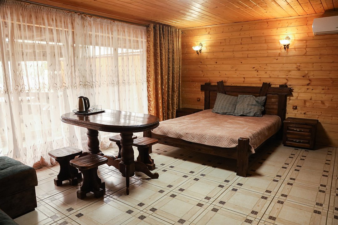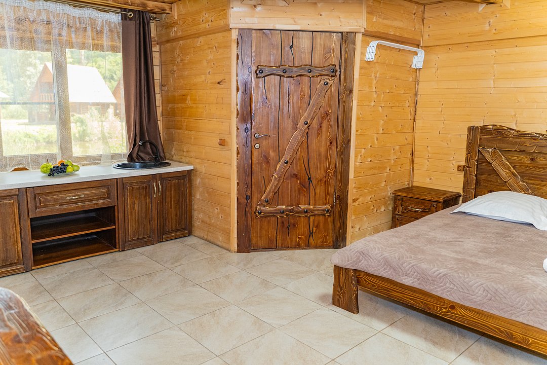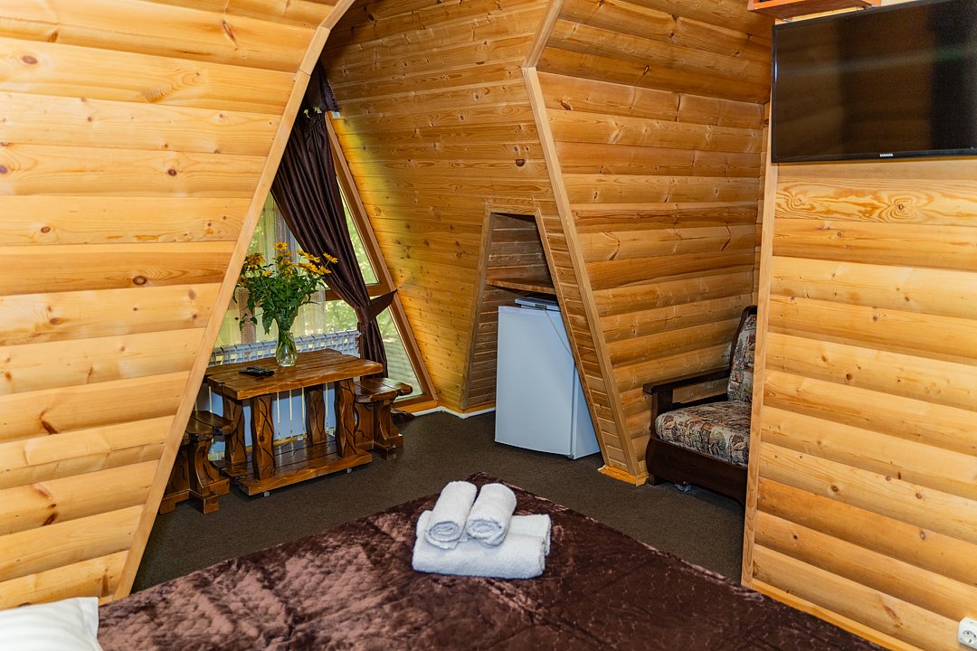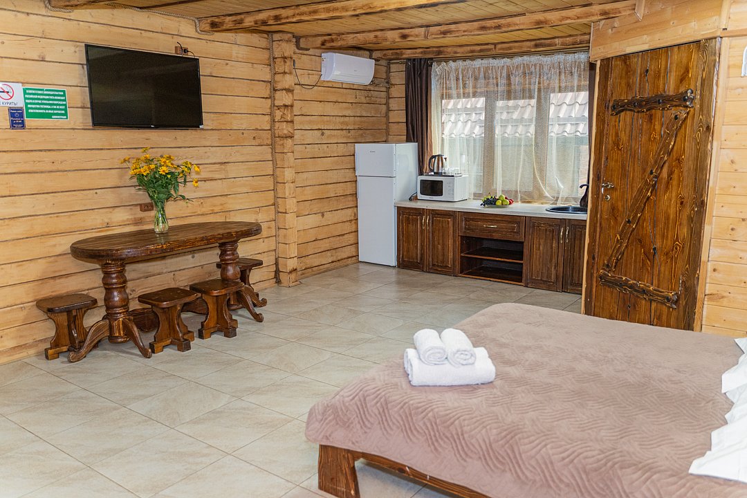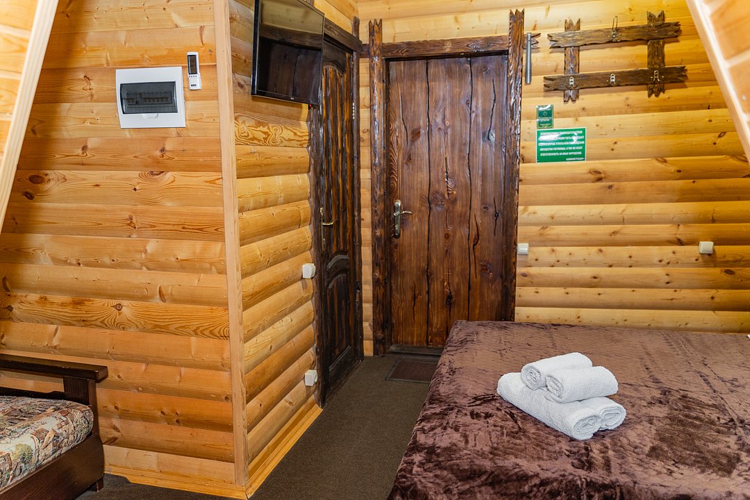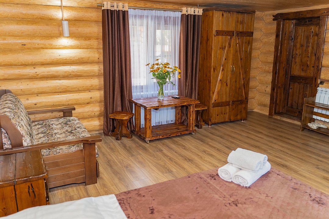 Для заселения предназначены номера в здании гостиницы и коттеджи. Внутренняя отделка помещений выполнена из натурального дерева, поэтому жильё является экологически чистым. Для комфортного проживания обеспечены все удобства.