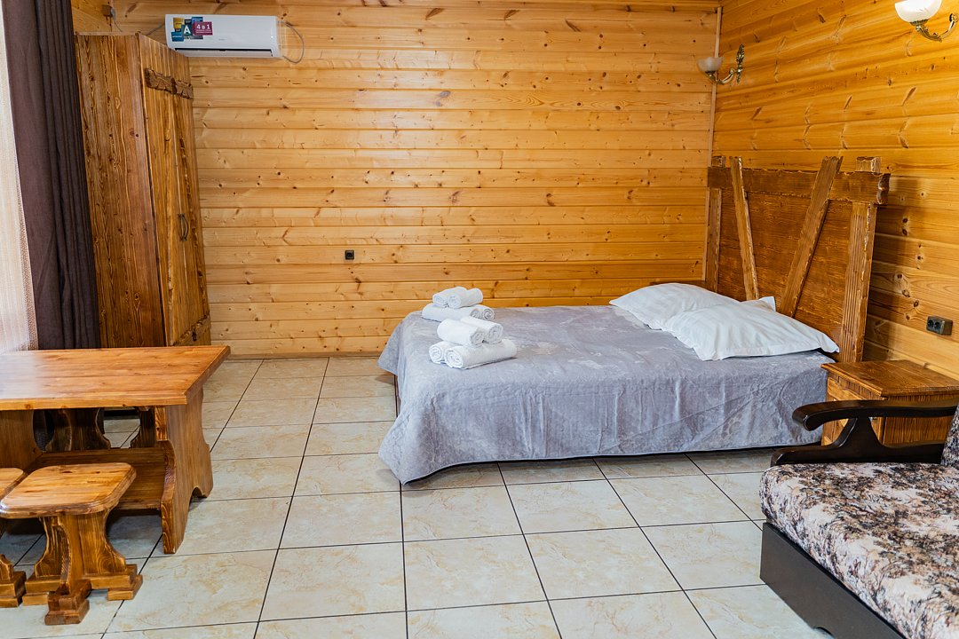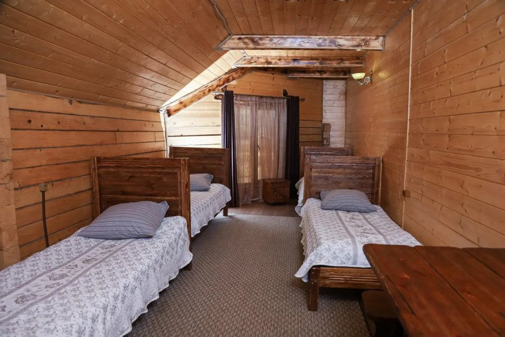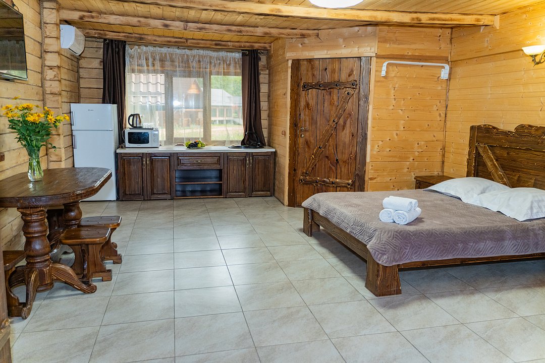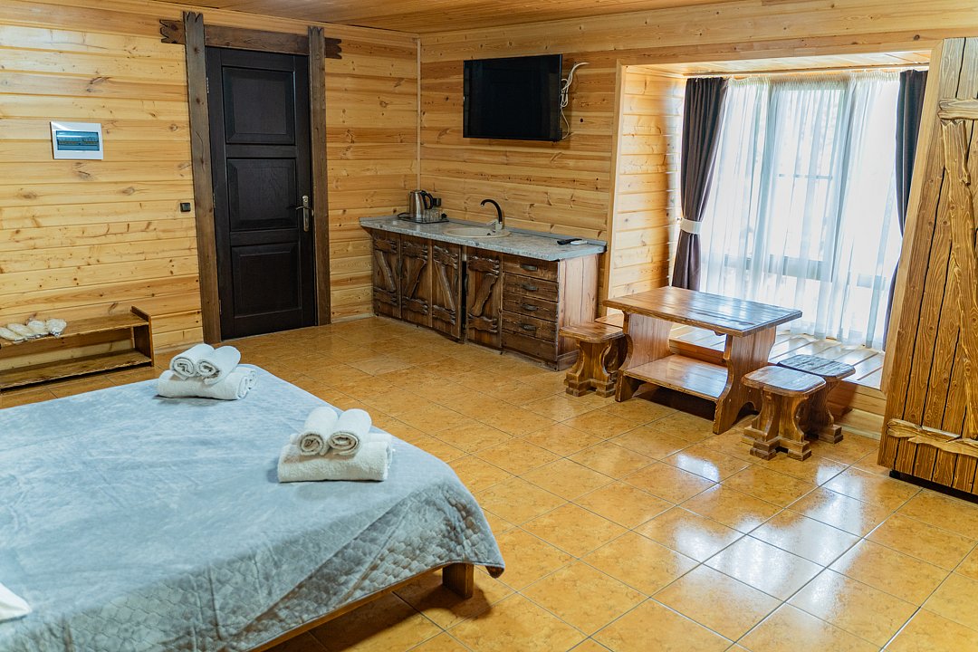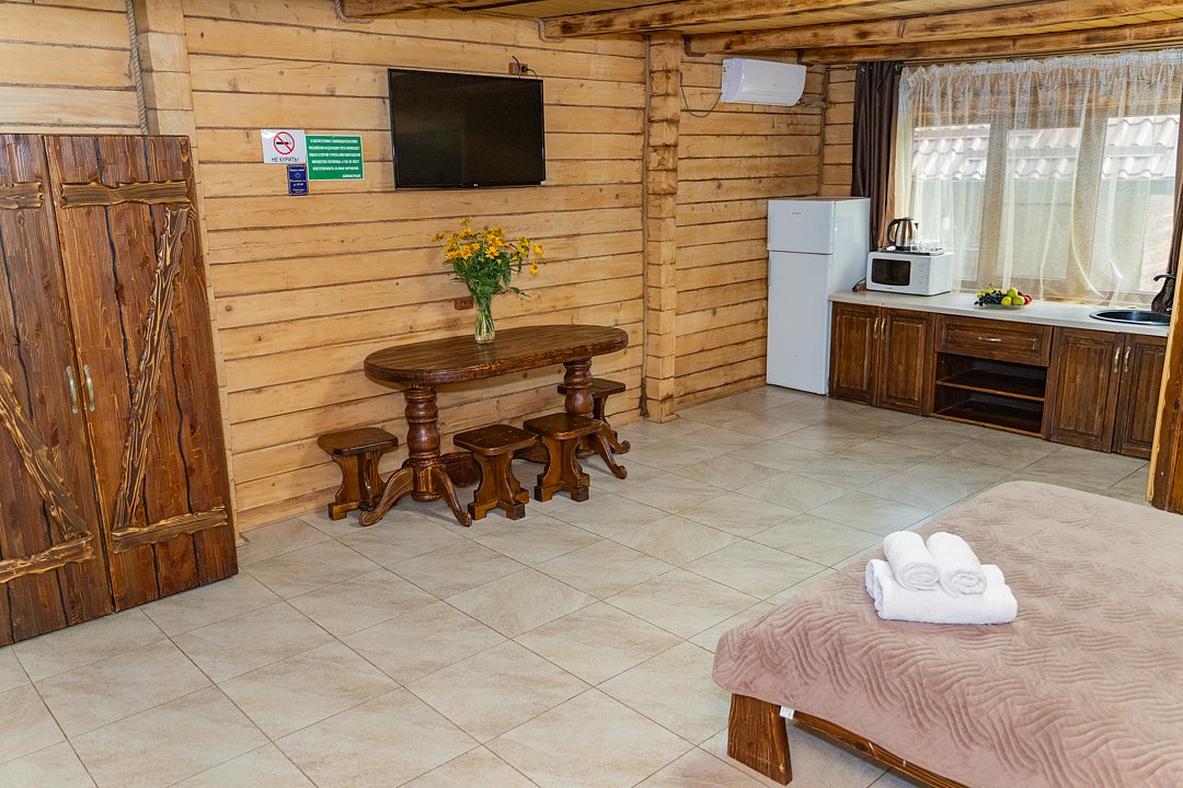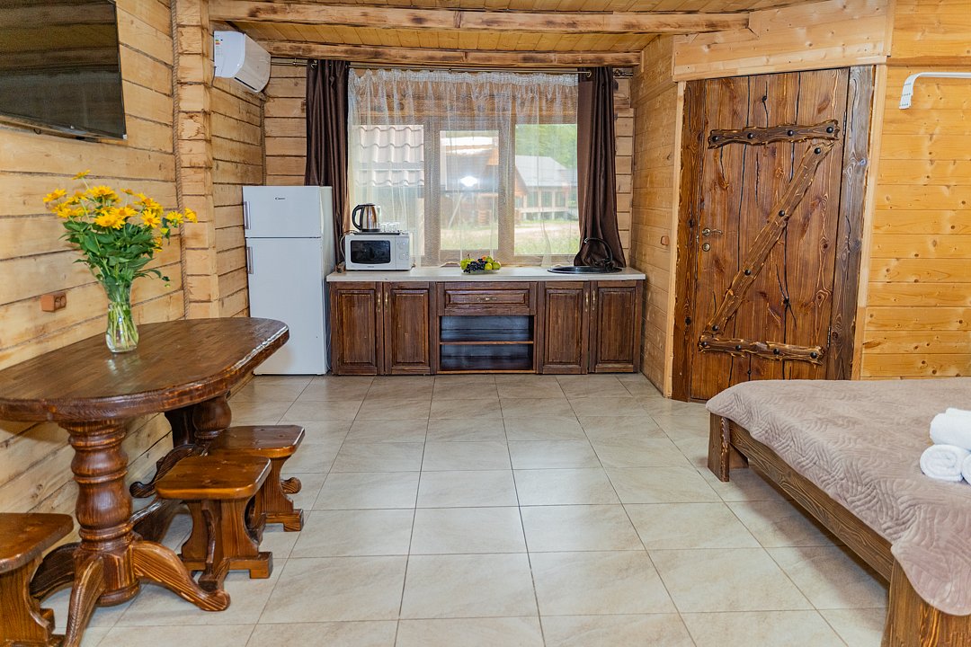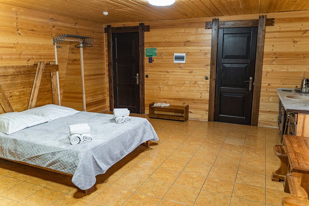 Для заселения предназначены номера в здании гостиницы и коттеджи. Внутренняя отделка помещений выполнена из натурального дерева, поэтому жильё является экологически чистым. Для комфортного проживания обеспечены все удобства.
