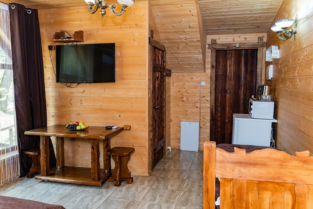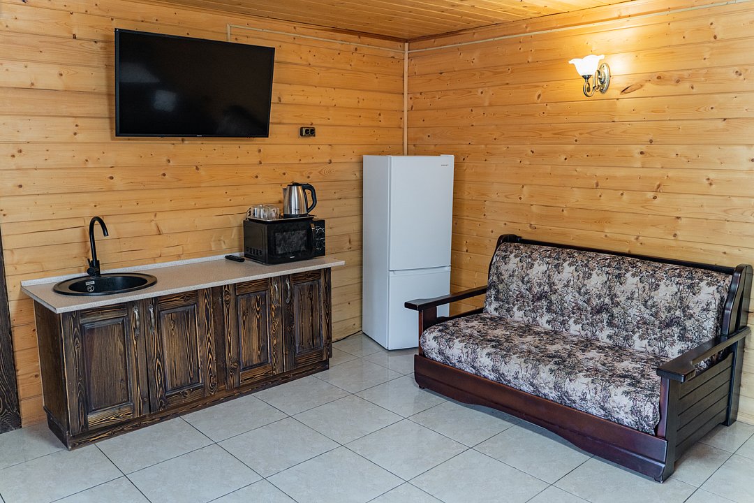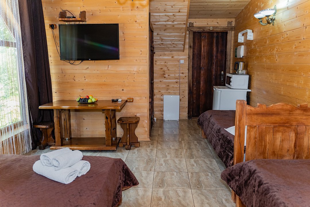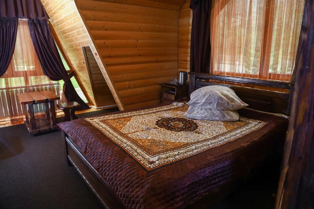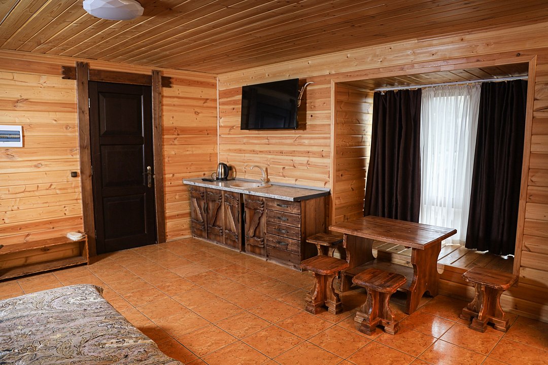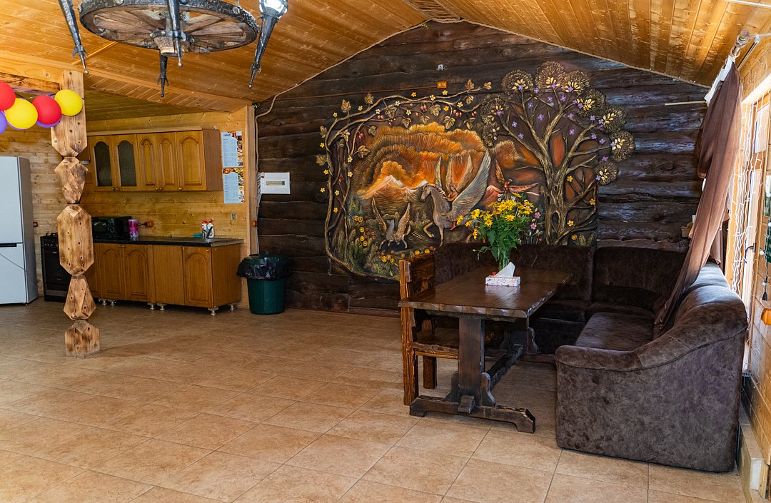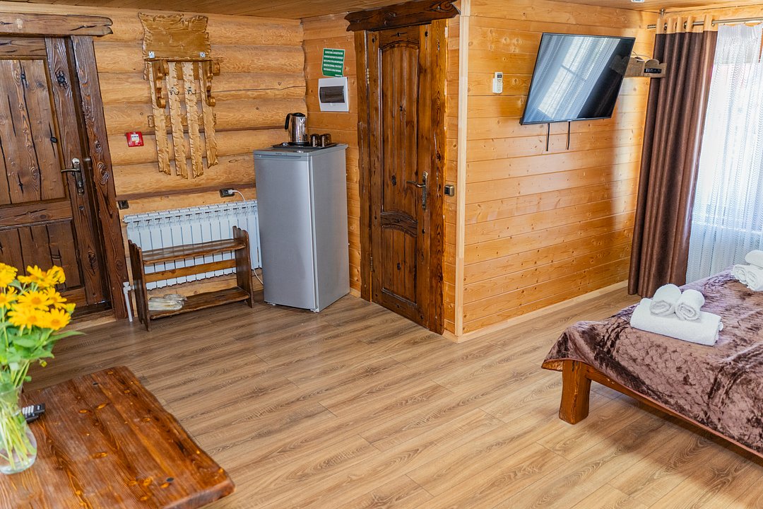 Для заселения предназначены номера в здании гостиницы и коттеджи. Внутренняя отделка помещений выполнена из натурального дерева, поэтому жильё является экологически чистым. Для комфортного проживания обеспечены все удобства.