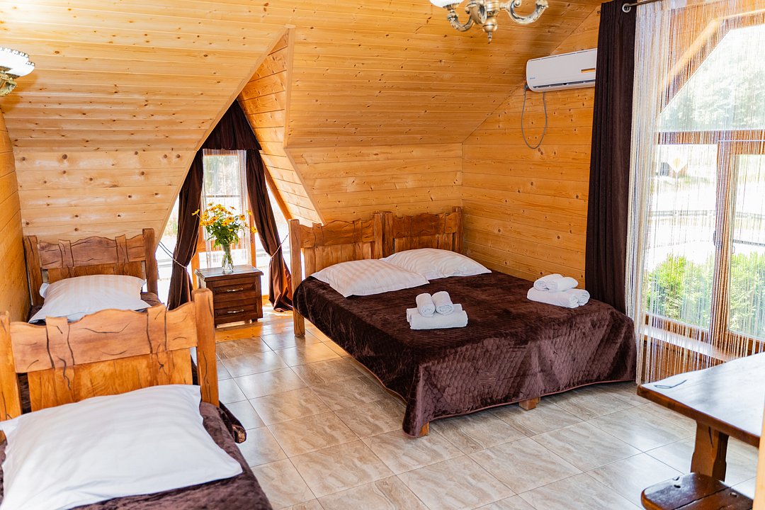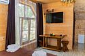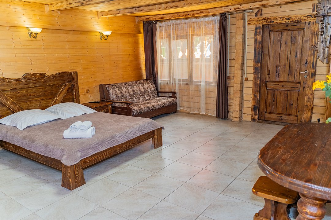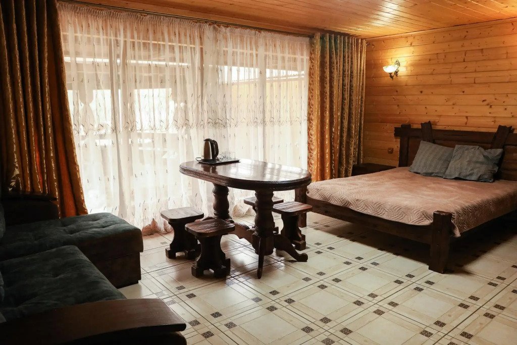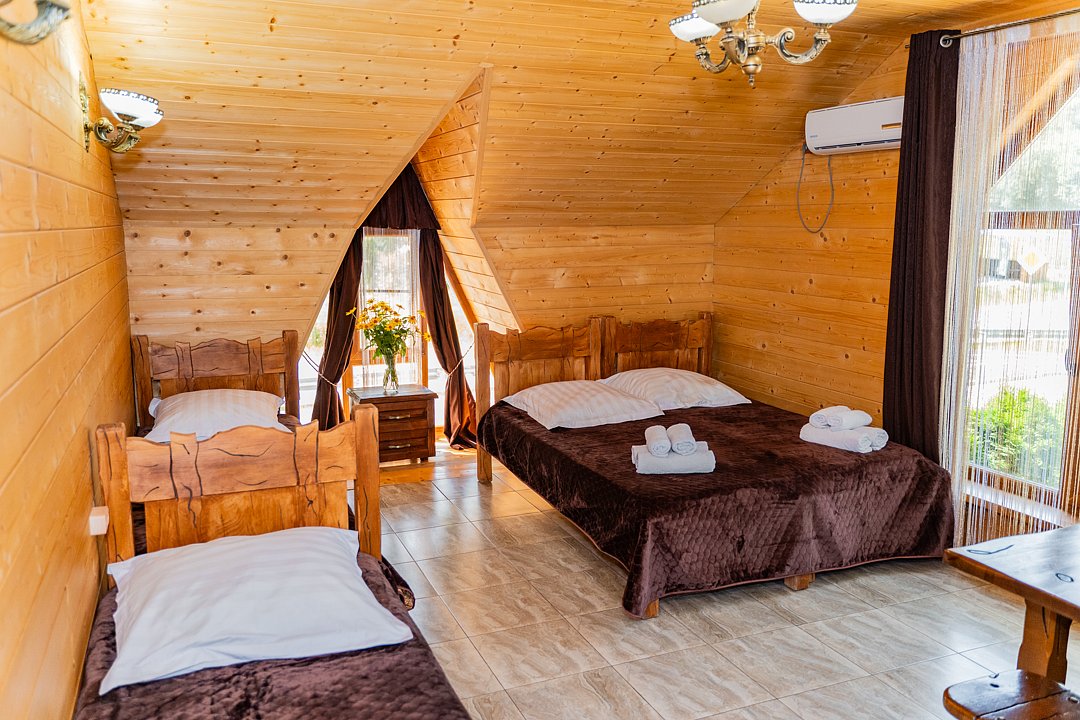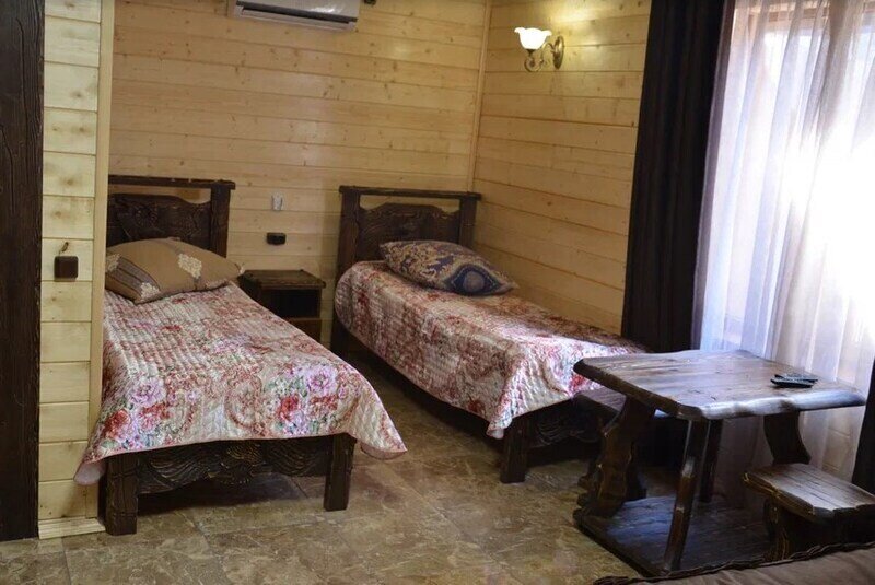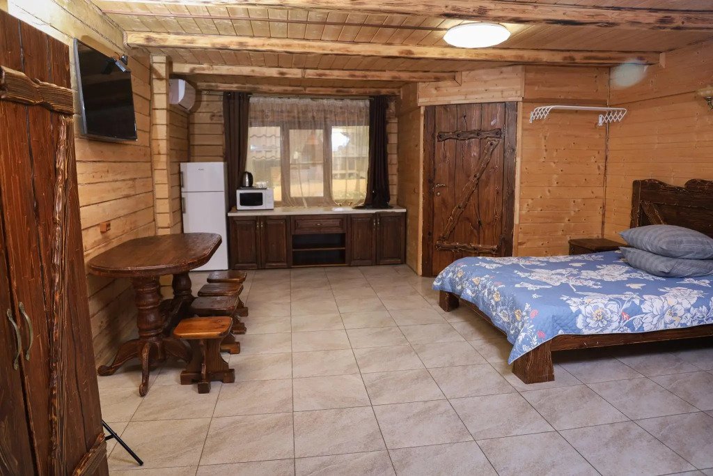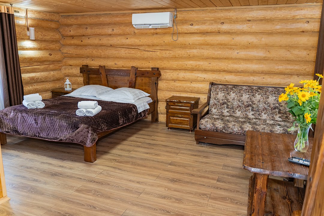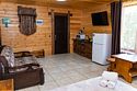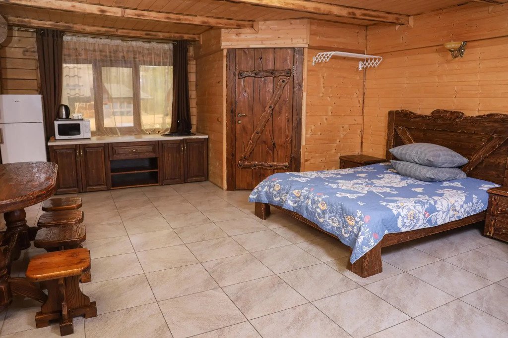 Для заселения предназначены номера в здании гостиницы и коттеджи. Внутренняя отделка помещений выполнена из натурального дерева, поэтому жильё является экологически чистым. Для комфортного проживания обеспечены все удобства.