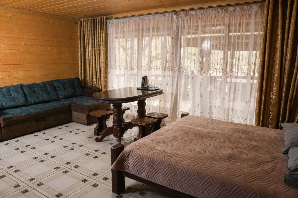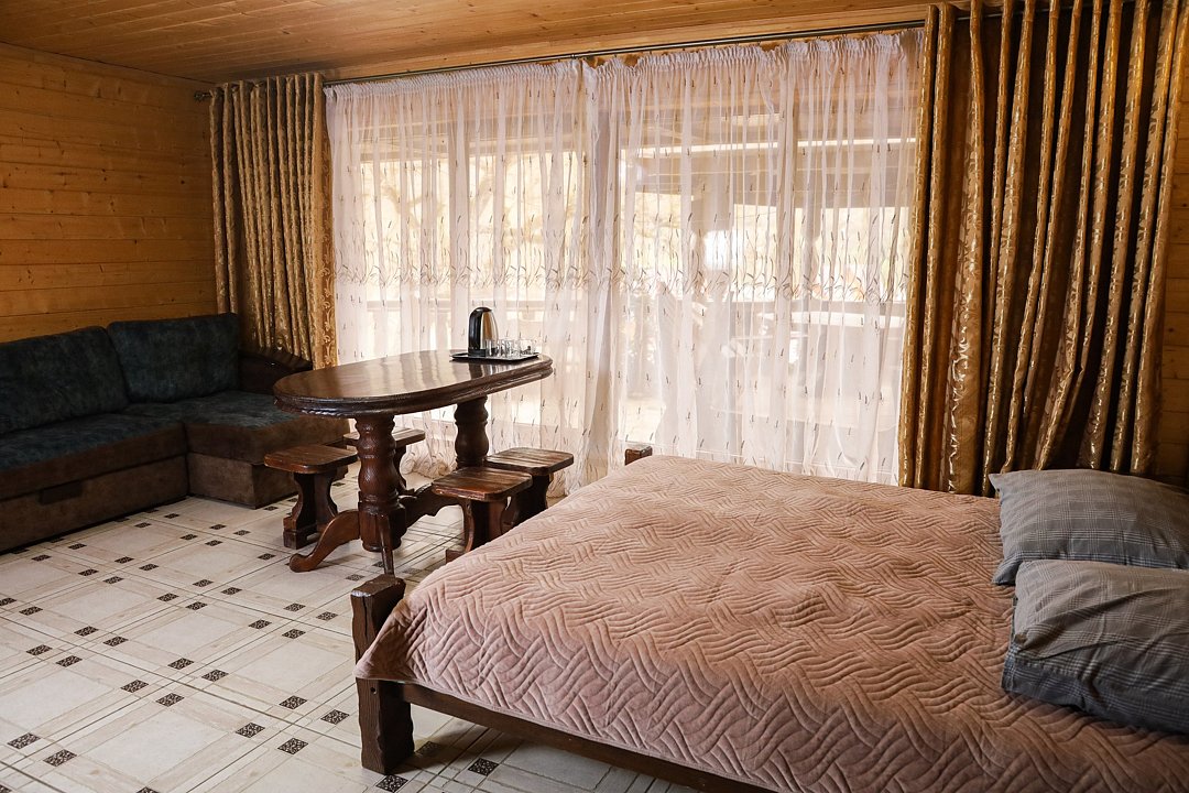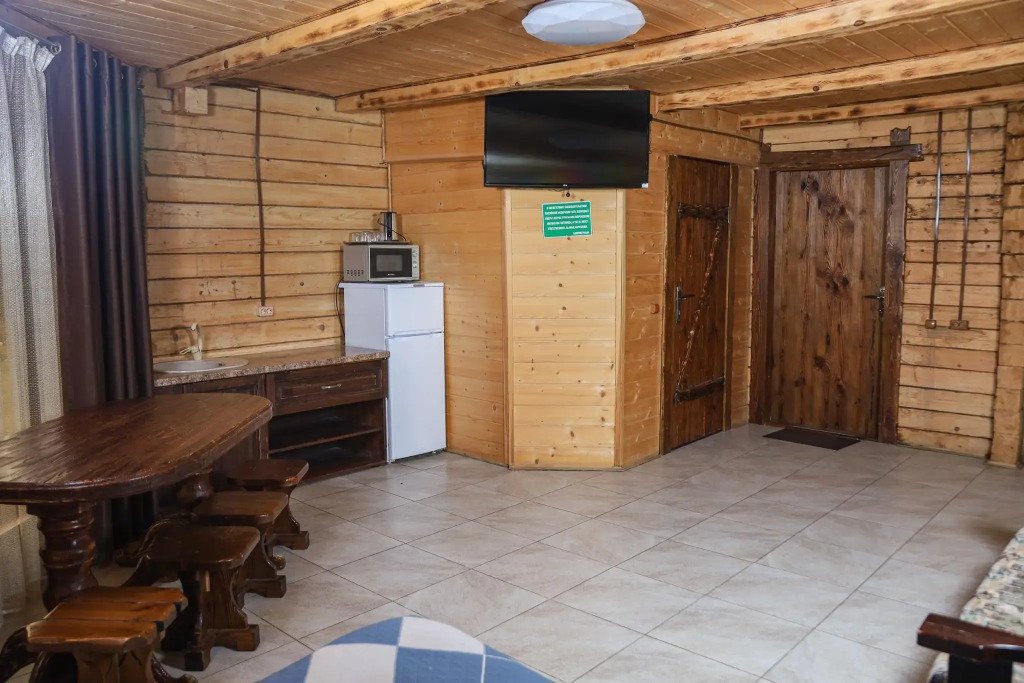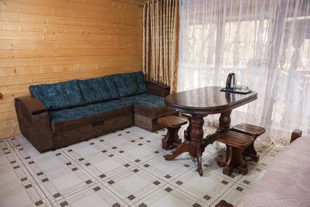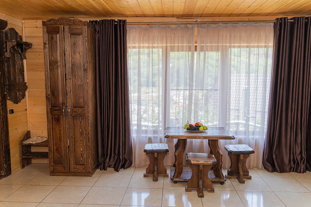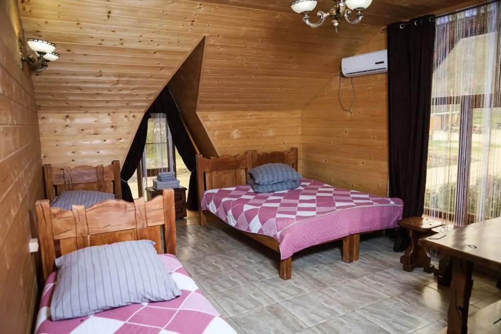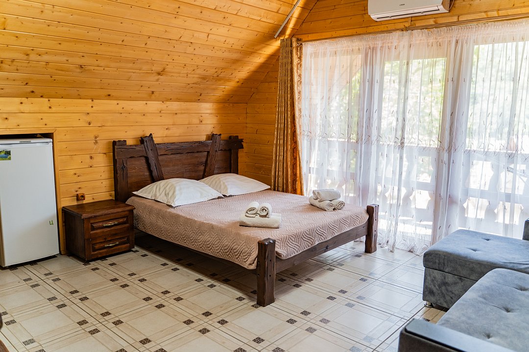 Для заселения предназначены номера в здании гостиницы и коттеджи. Внутренняя отделка помещений выполнена из натурального дерева, поэтому жильё является экологически чистым. Для комфортного проживания обеспечены все удобства.
