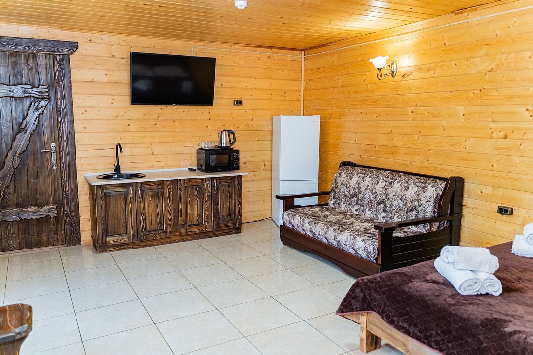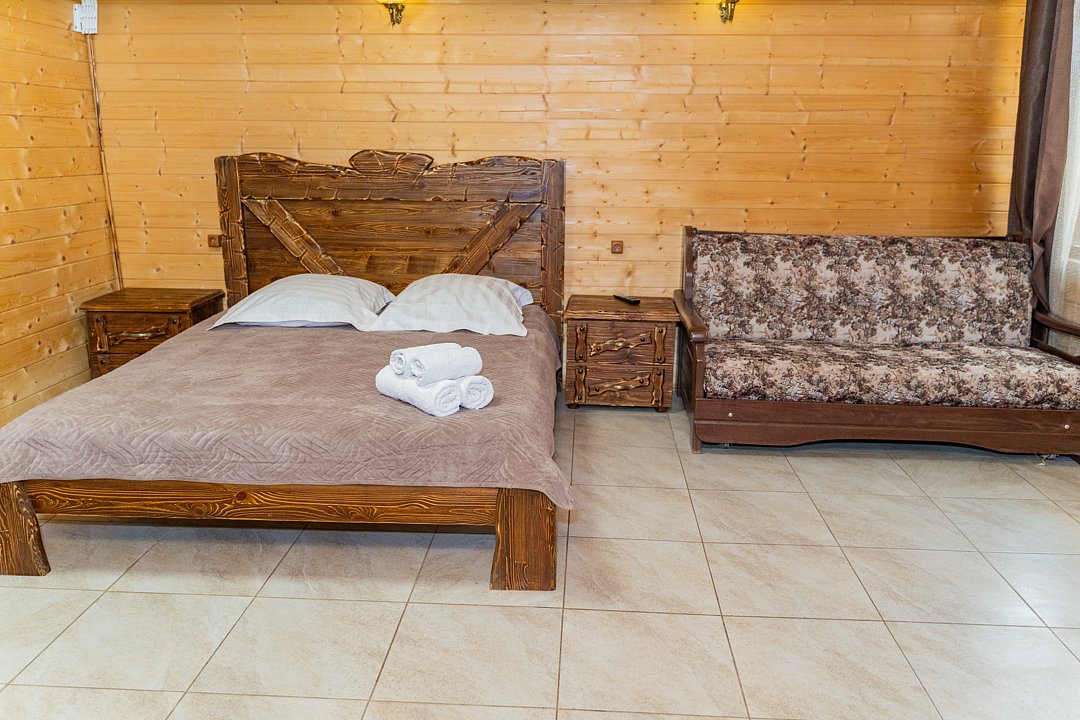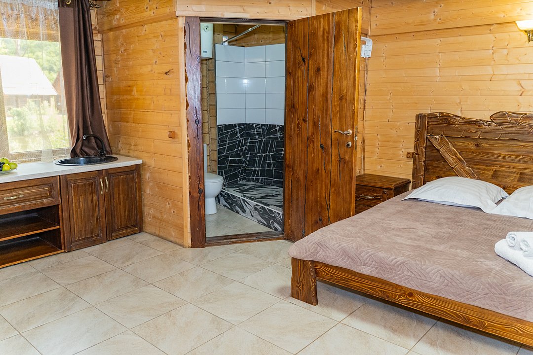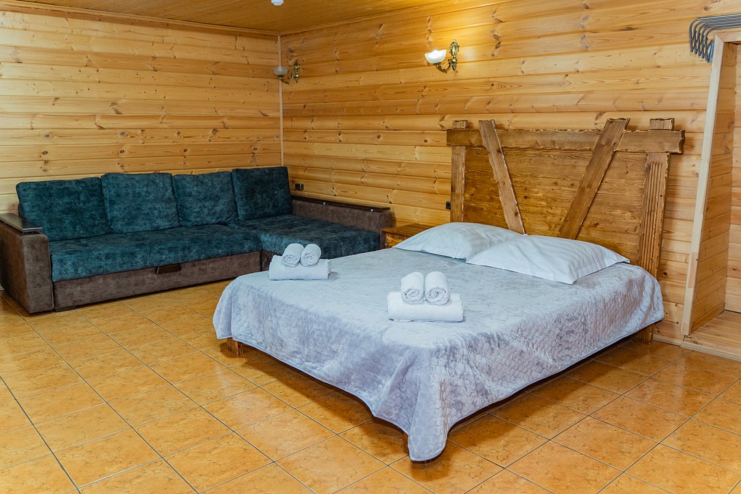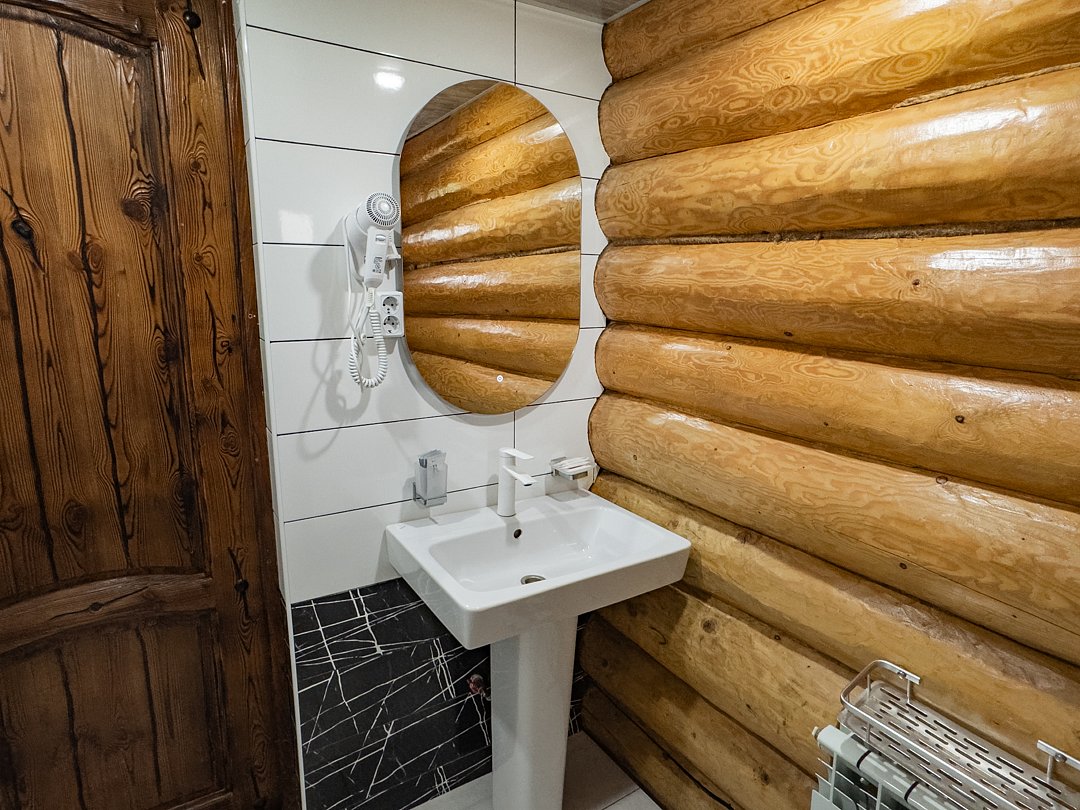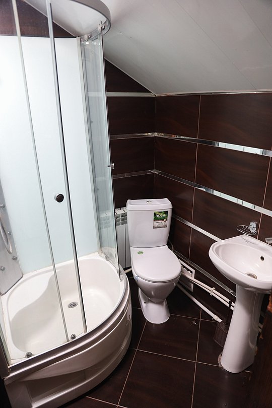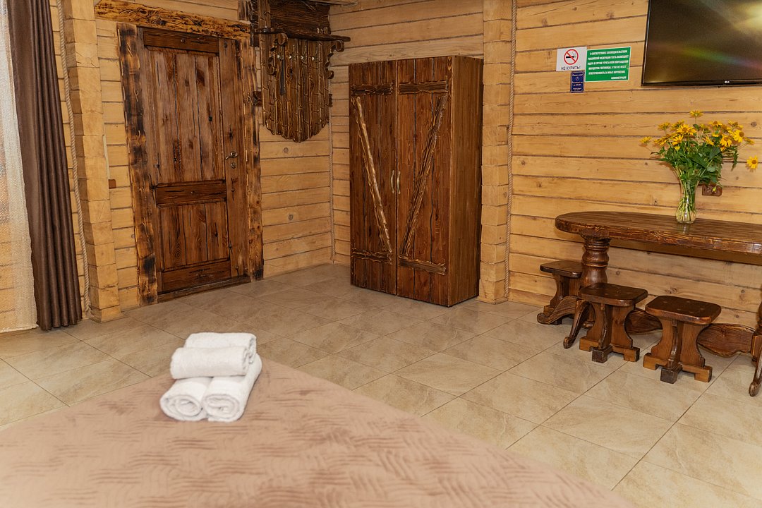 Номер находится на 2-ом этаже над баней, имеется все необходимое для комфортного отдыха. Санузел на этаже.