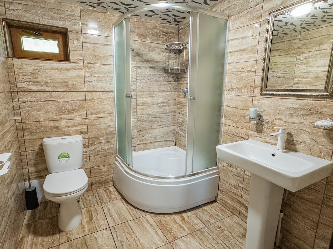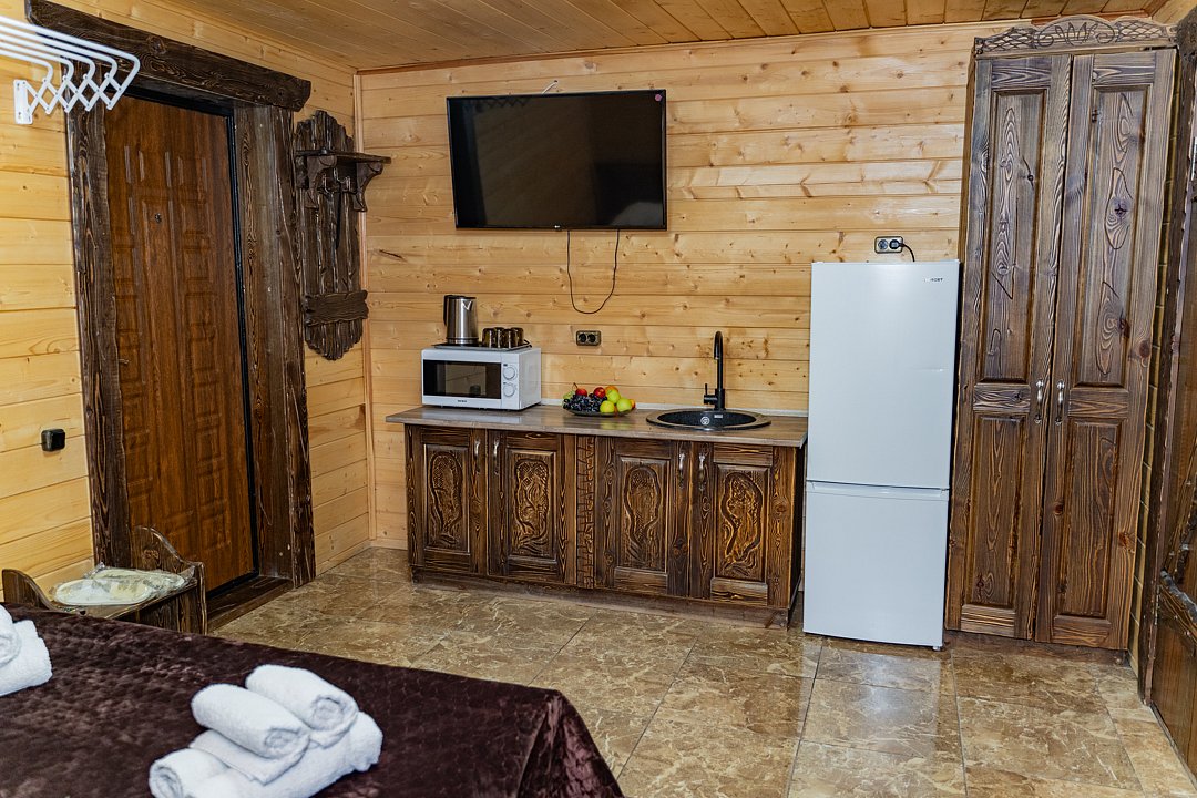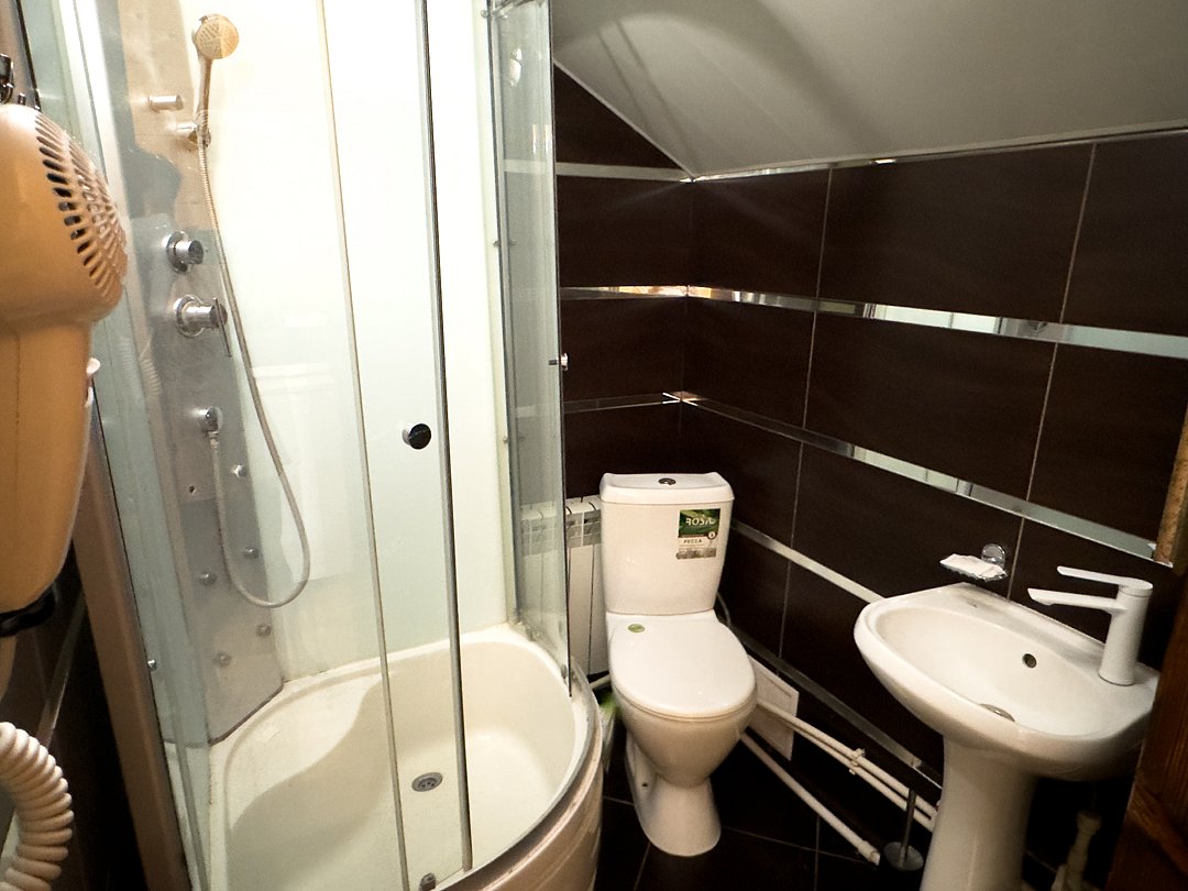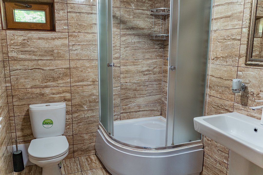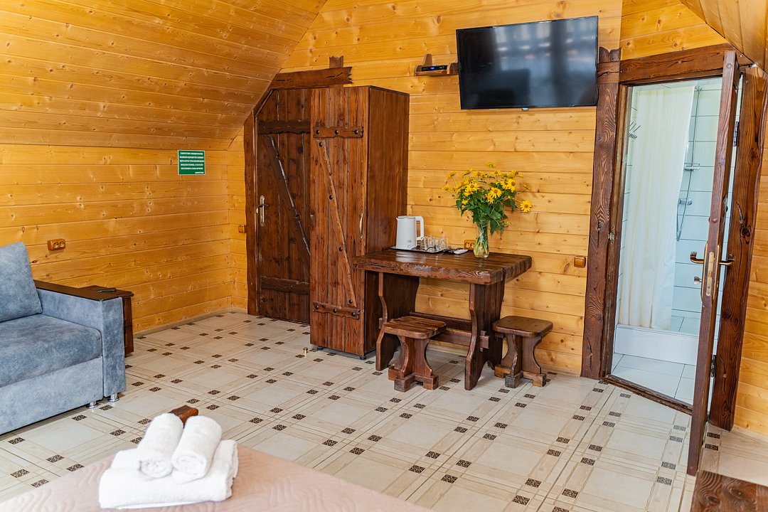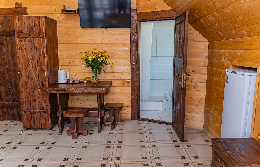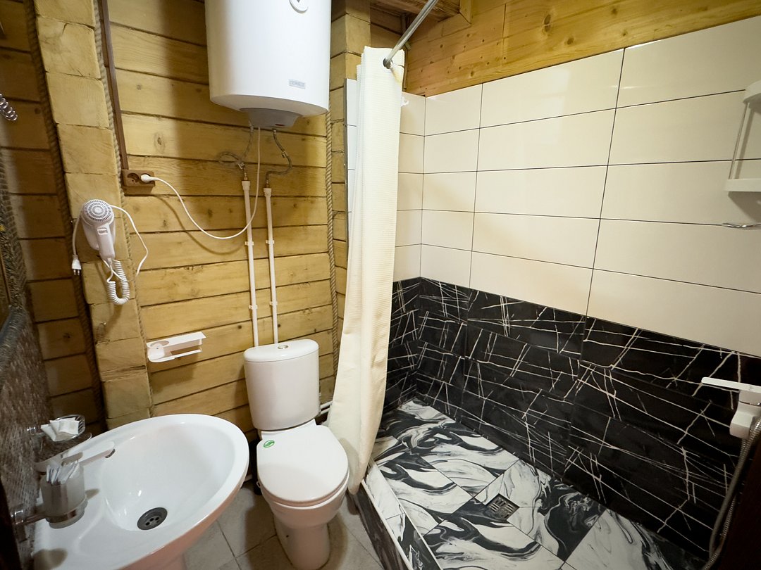 Номер находится на 2-ом этаже над баней, имеется все необходимое для комфортного отдыха. Санузел на этаже.