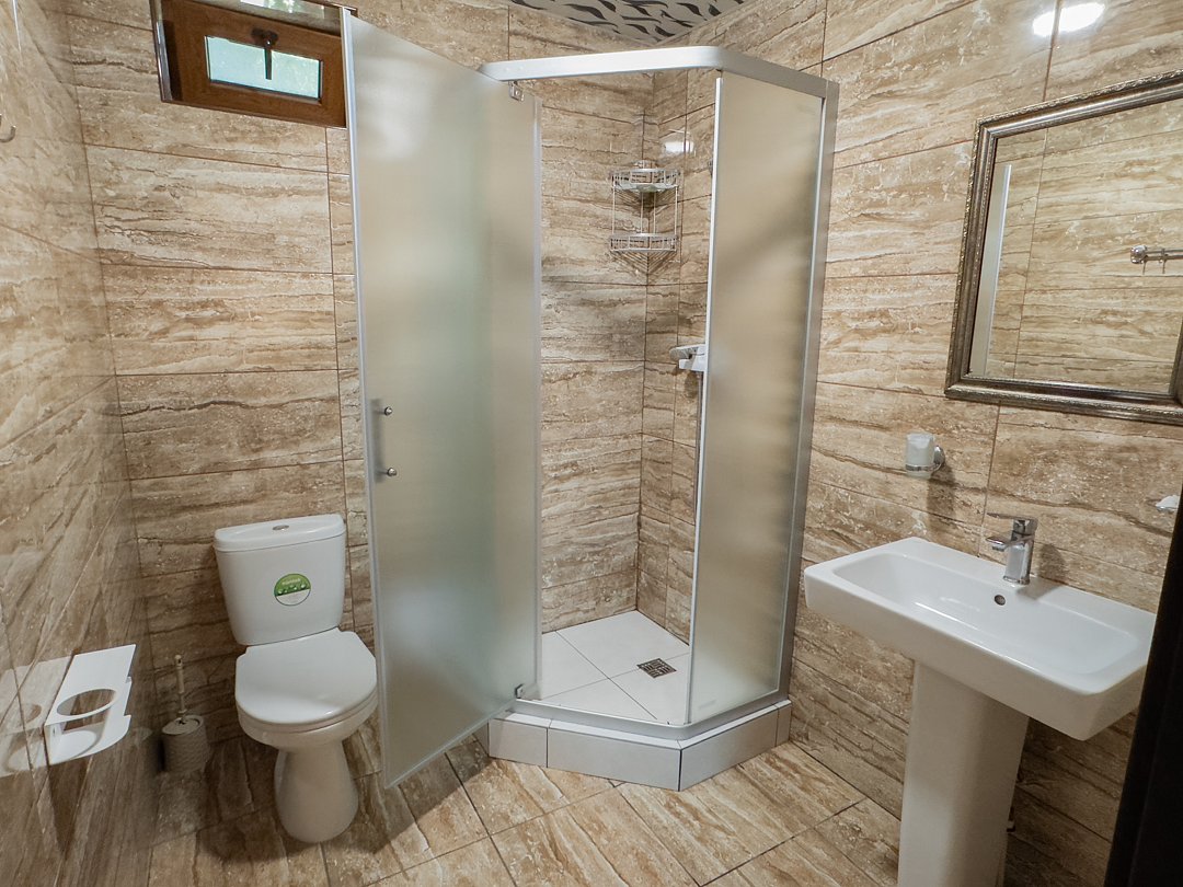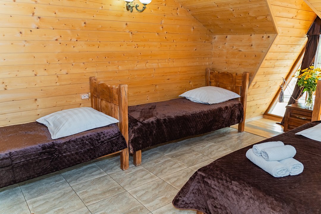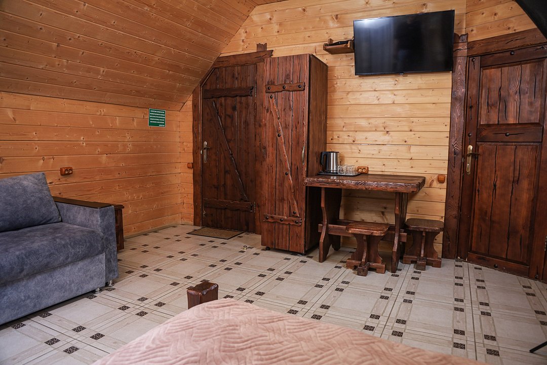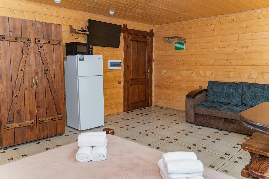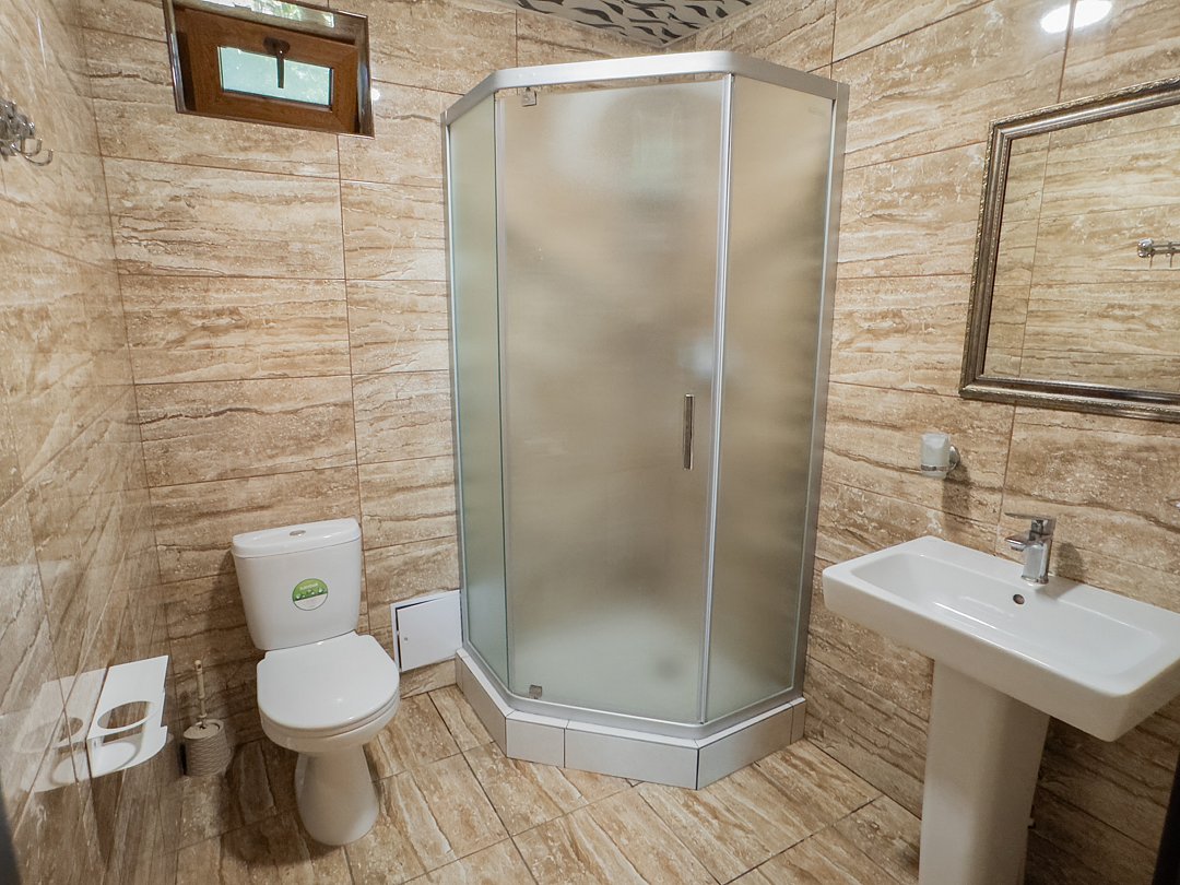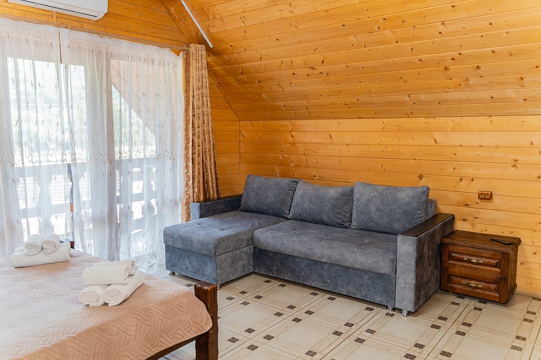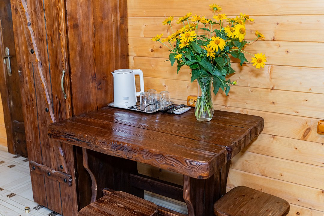 Номер находится на 2-ом этаже над баней, имеется все необходимое для комфортного отдыха. Санузел на этаже.