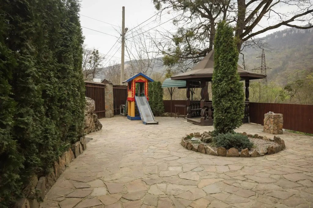 Домик от бассейна 80 метров. Бесплатно: подогреваемый бассейн, беседка, мангал, автостоянка, фен по запросу. Отдельный двор. Детская площадка.