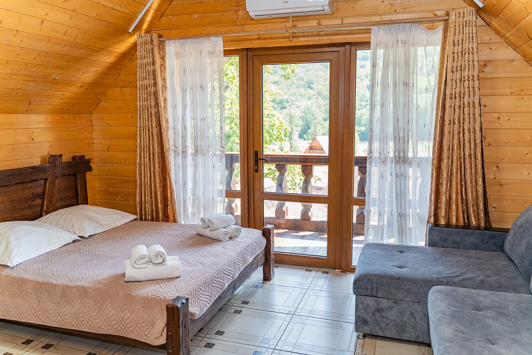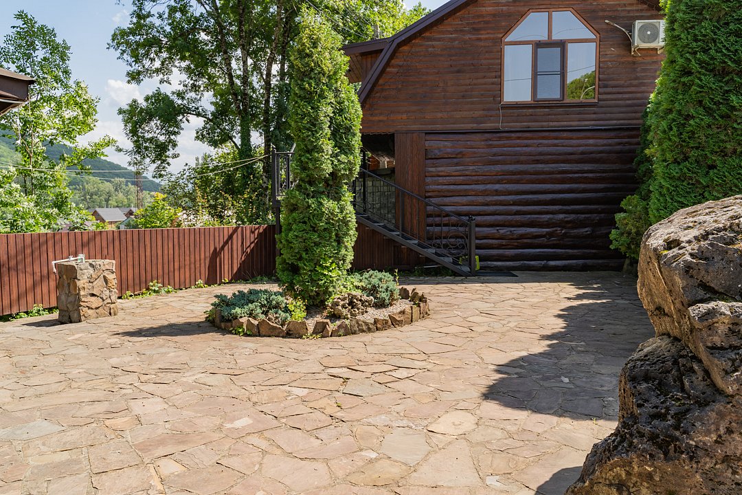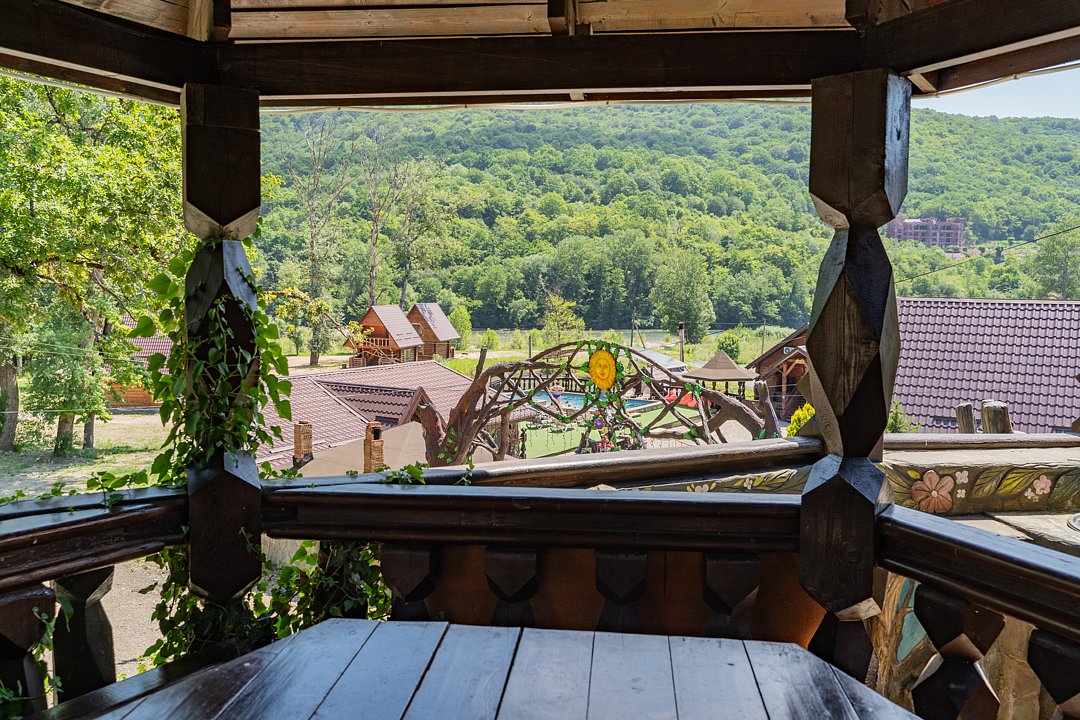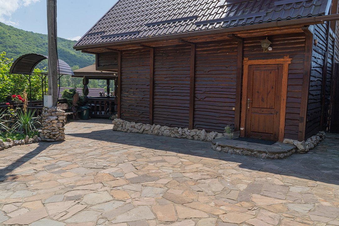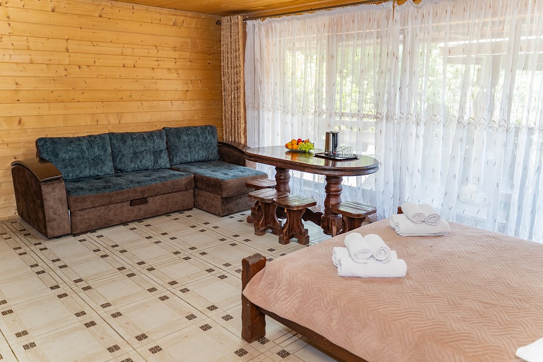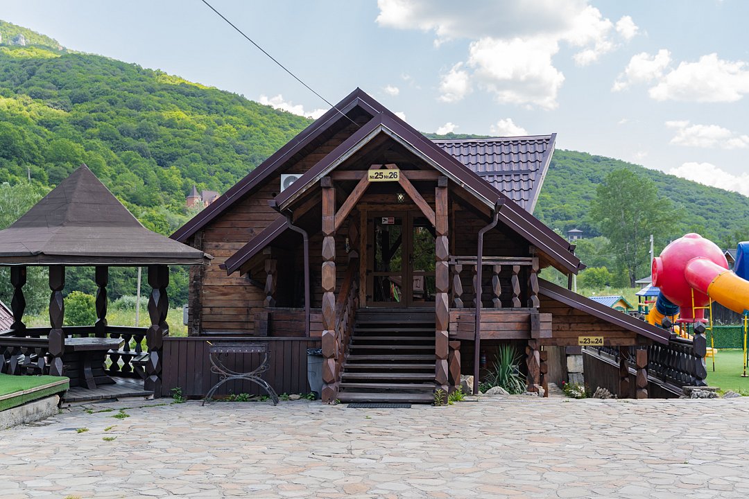 Семейный отдыхДостоинстваРасположение очень удачное, близко канатная дорога, дорога в поселок и на плато. На территории много беседок, мест для пикника Рядом протекает река.