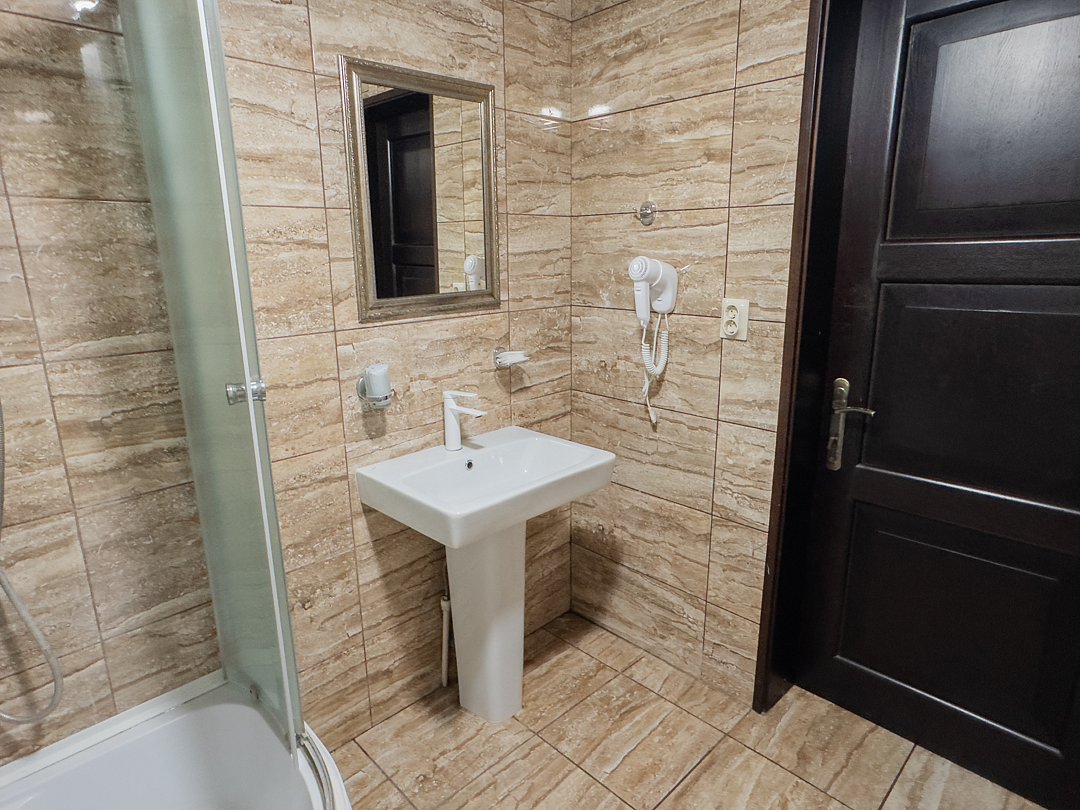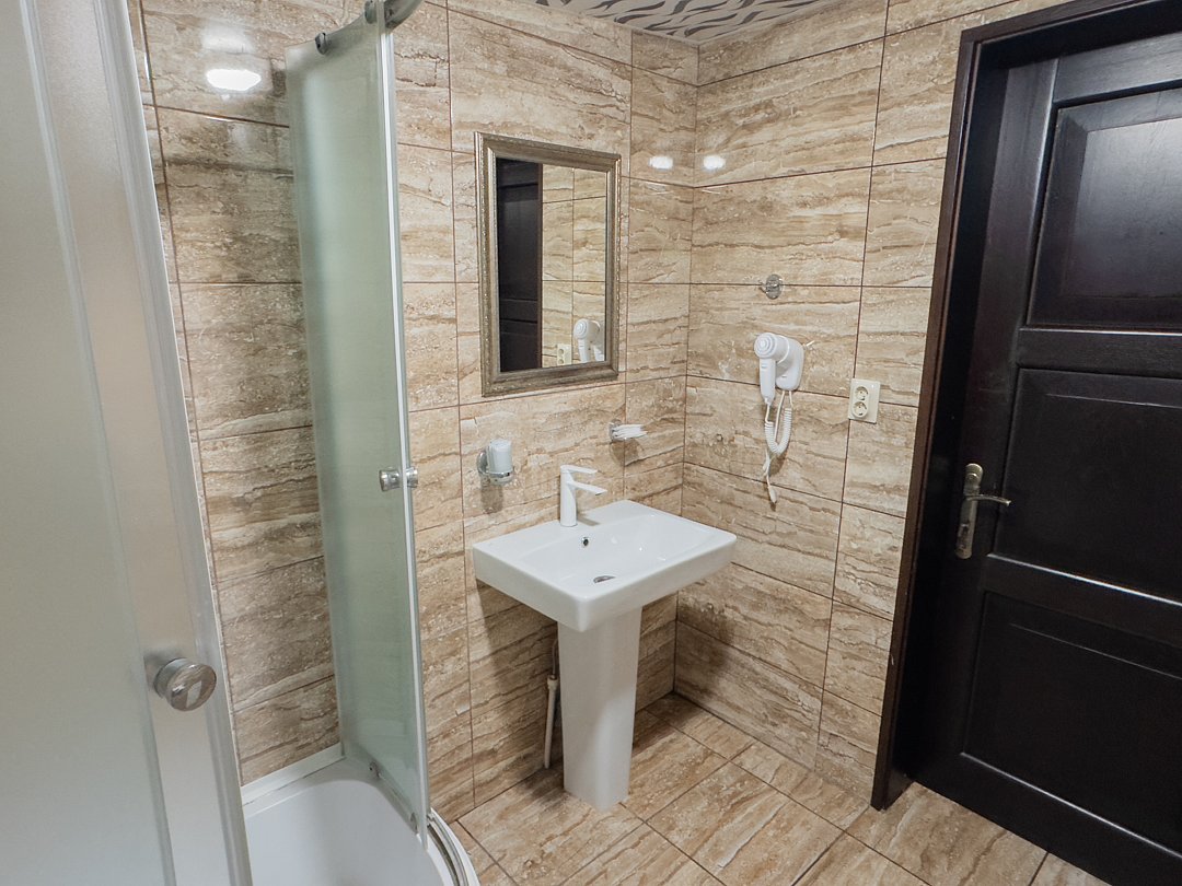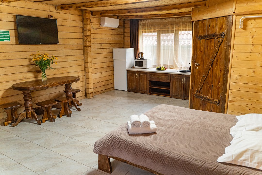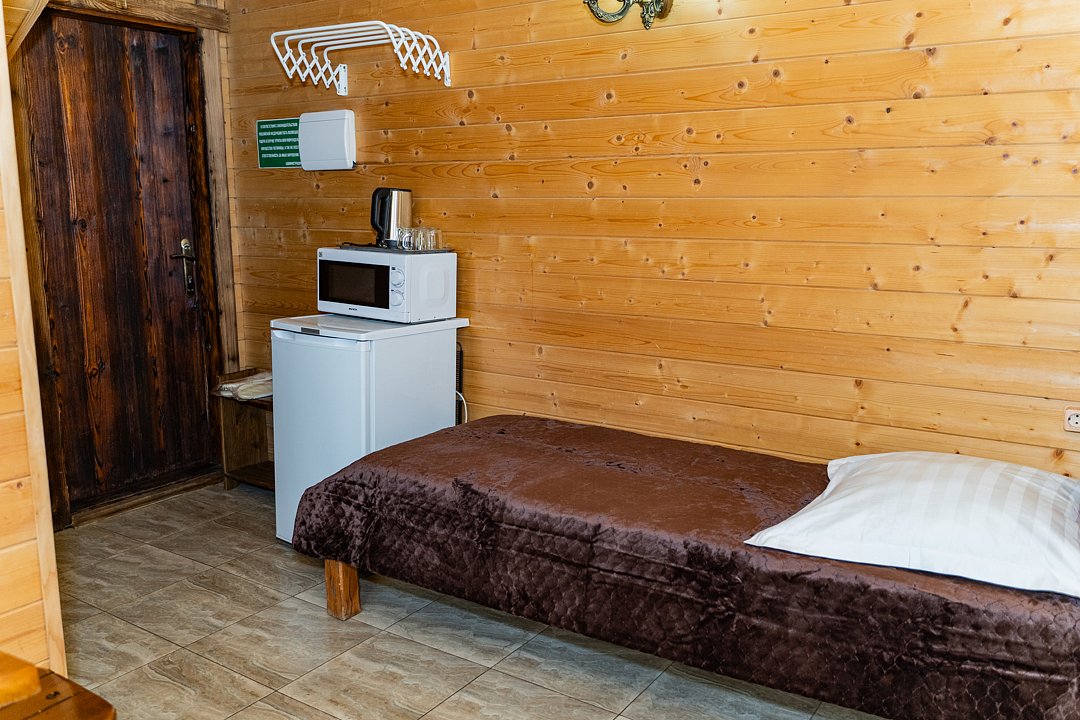 Есть небольшой бассейн и отличная баня. В кафе готовят вкусную солянку.НедостаткиВ номере было не очень чисто.