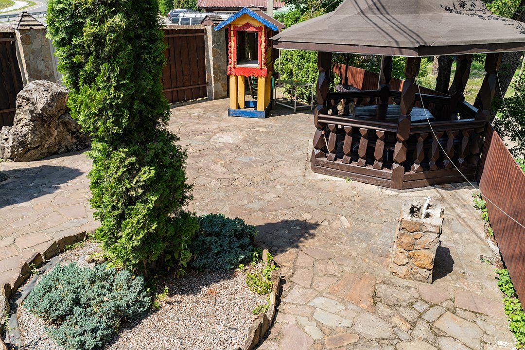 Домик от бассейна — 80 метров. Бесплатно: подогреваемый бассейн, беседка, мангал, автостоянка для машин, фен по запросу.
